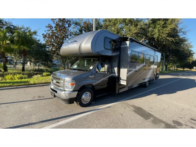 With any Four Winds Class C gas motorhome, you can travel in a trustworthy Ford E-Series chassis with 325HP. Each is built with welded sidewall cage construction and a welded tubular aluminum roof, a one-piece fiberglass cap, and includes a slick fiberglass exterior with graphics package for style and years of enjoyment on the open road. Inside, you will enjoy the well-equipped kitchen, the spacious bathroom, the sleeping accommodations and the Winegard ConnecT 2.0 WiFi/4G/TV antenna that allows you to stay connected. With several floorplans to choose from and options to add, you will surely find one that fits your family's needs or your friend's approval. Choose today!