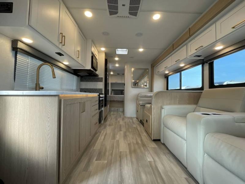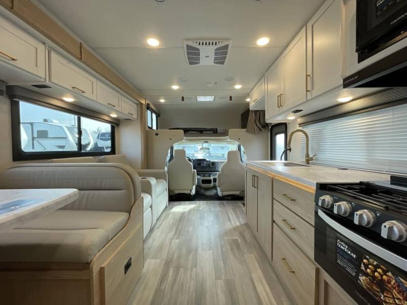 With any Four Winds Class C gas motorhome, you can travel in a trustworthy Ford E-Series chassis with 325HP. Each is built with welded sidewall cage construction and a welded tubular aluminum roof, a one-piece fiberglass cap, and includes a slick fiberglass exterior with graphics package for style and years of enjoyment on the open road. Inside, you will enjoy the well-equipped kitchen, the spacious bathroom, the sleeping accommodations and the Winegard ConnecT 2.0 WiFi/4G/TV antenna that allows you to stay connected. With several floorplans to choose from and options to add, you will surely find one that fits your family's needs or your friend's approval. Choose today!