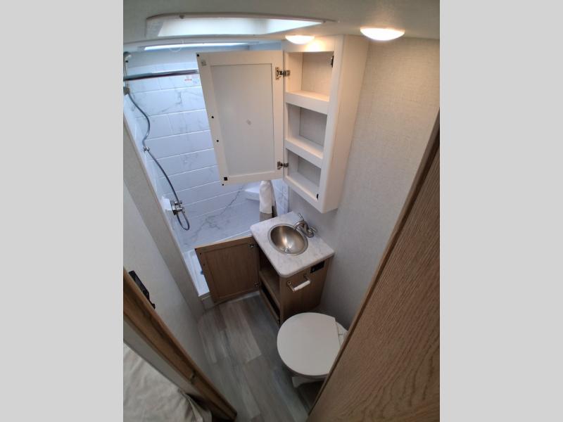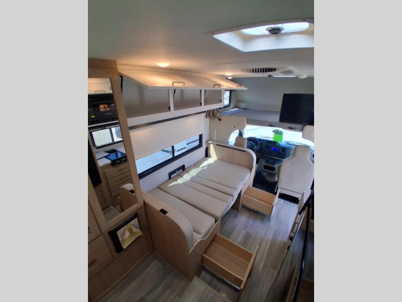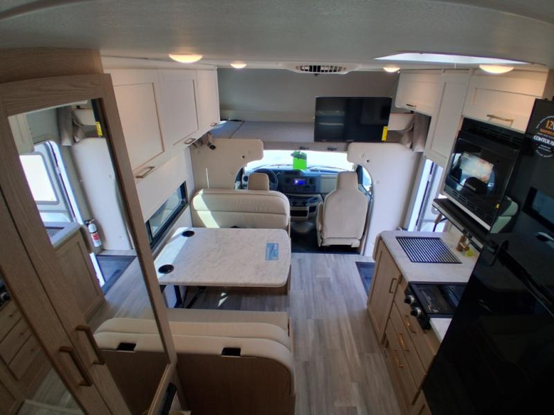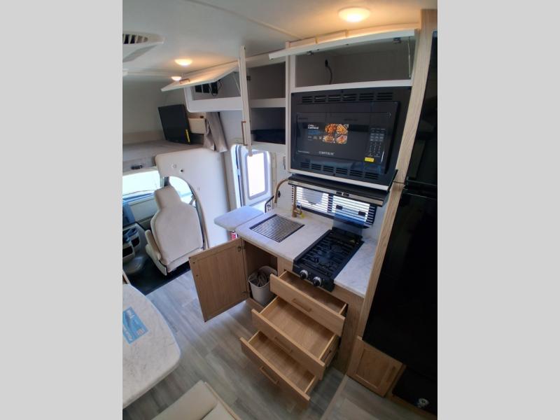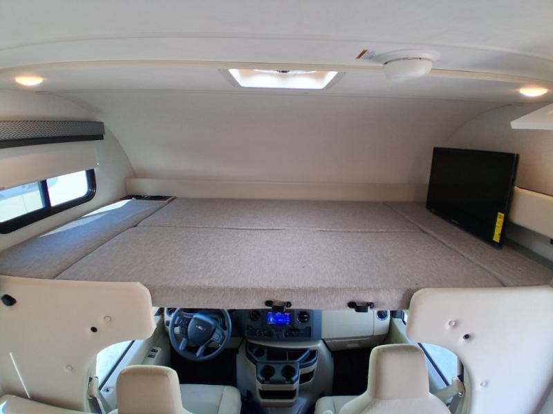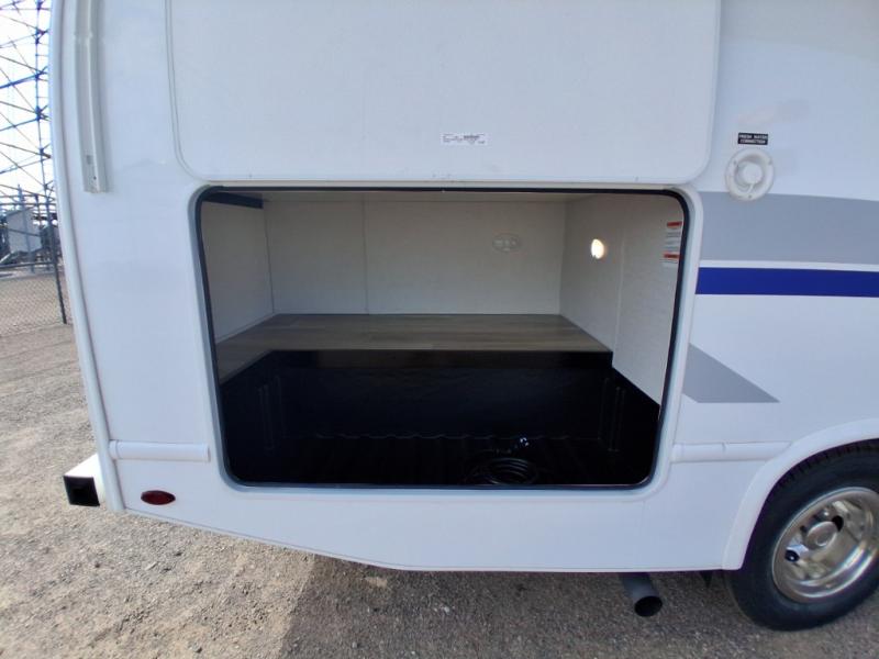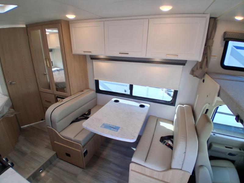 With any Four Winds ESpec Essential Class C gas motorhome by Thor Motor Coach, you will find convenient amenities, a modern interior, and a reliable Ford E-Series chassis, with an optional Chevy chassis on select models to power your adventures. There is welded tubular aluminum roof and sidewall cage construction, a one-piece fiberglass front cap, and premium one-piece Crossflex exterior roofing for added strength. Residential vinyl flooring will be easy to keep clean, and you'll love the sleek look of the Coastline Grey flat panel cabinet doors. These motorhomes also include a 4.0 kW gas generator and a 30-amp shoreline power cord to keep you going, along with a tankless water heater and 13,500 roof front A/C to ensure your comfort!