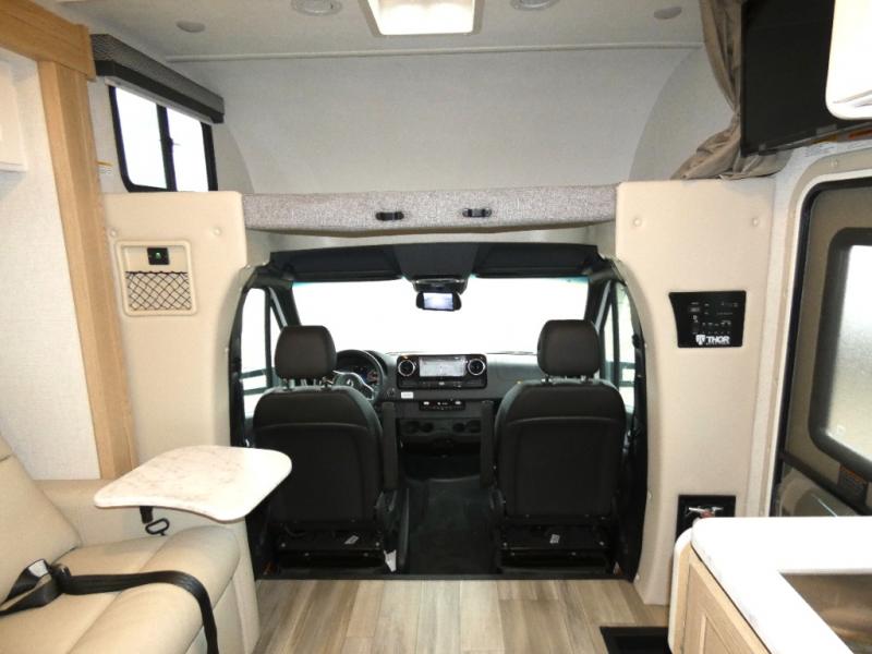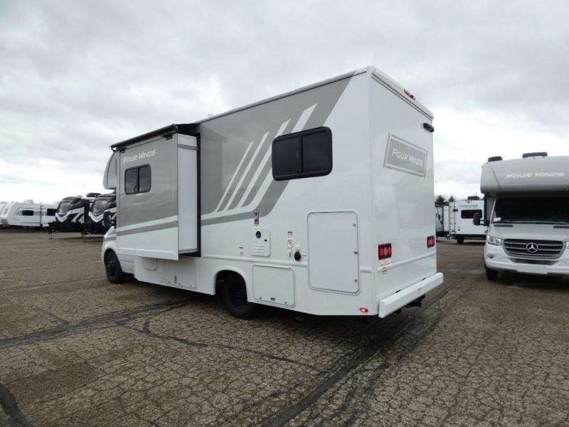 With any Four Winds Sprinter Class C diesel motorhome by Thor Motor Coach, you will have everything you need for unforgettable trips on the road! Each model is constructed with a durable one-piece fiberglass front cap plus a one-piece upper rear cap, a welded tubular aluminum roof and sidewall cage, plus a slick fiberglass exterior with standard graphics package. You can put your own style on your coach by choosing one of the optional partial paint choices, plus there two modern interior decor choices to choose from. The Mercedes-Benz sprinter chassis provides a strong foundation for each model, and the 2.0L l-4 211HP engine will power your adventures both near and far. There is even a 5,000 lb. trailer hitch if you need to tow a jet ski or fishing boat. A 100-watt solar charging system comes standard, along with a 50 State 4.0 kw LP generator, a tankless water heater, plus many more utilities to make each trip hassle-free. Step inside to find residential vinyl flooring, Leatherette furniture, and pressed laminate countertops to name a few comforts!