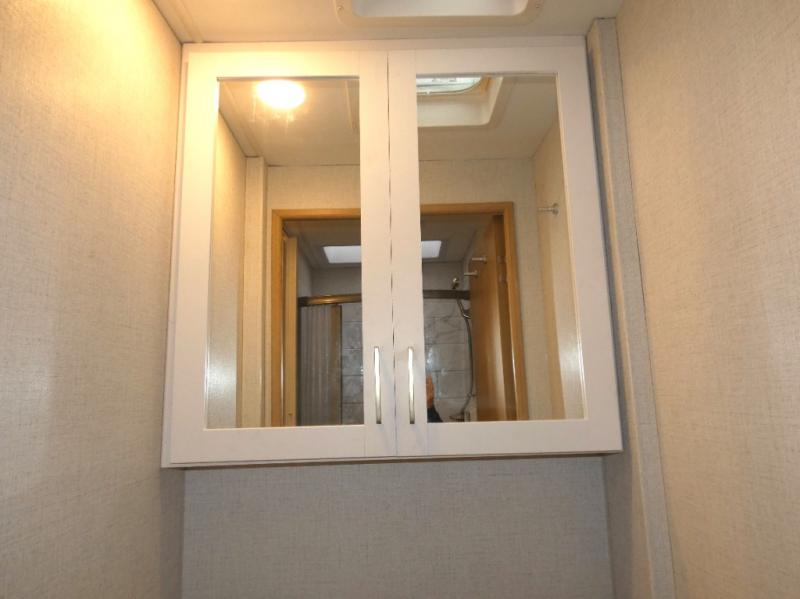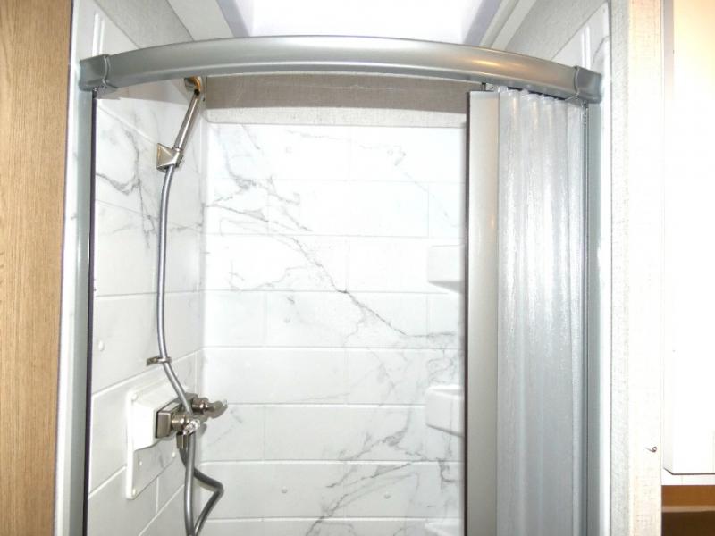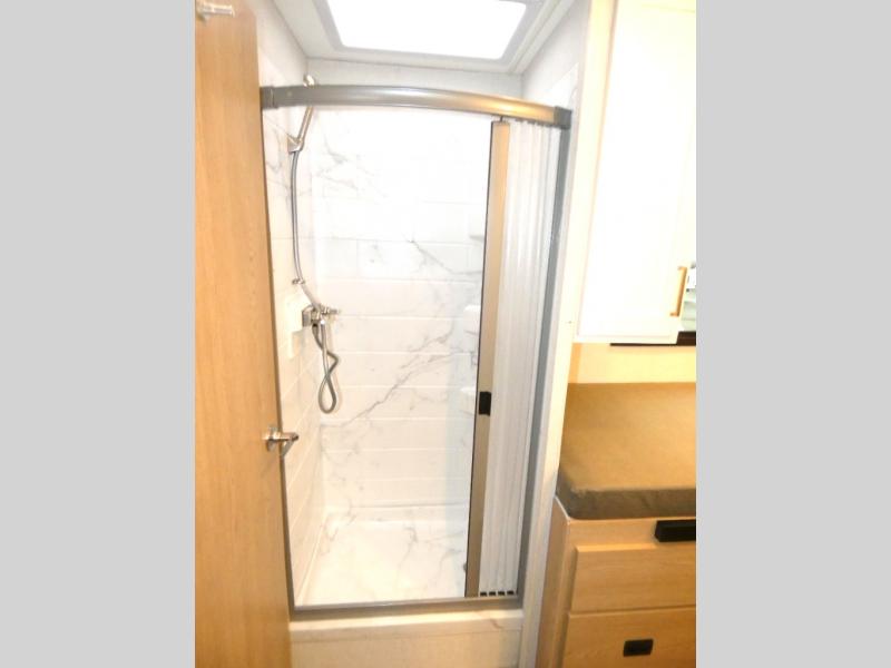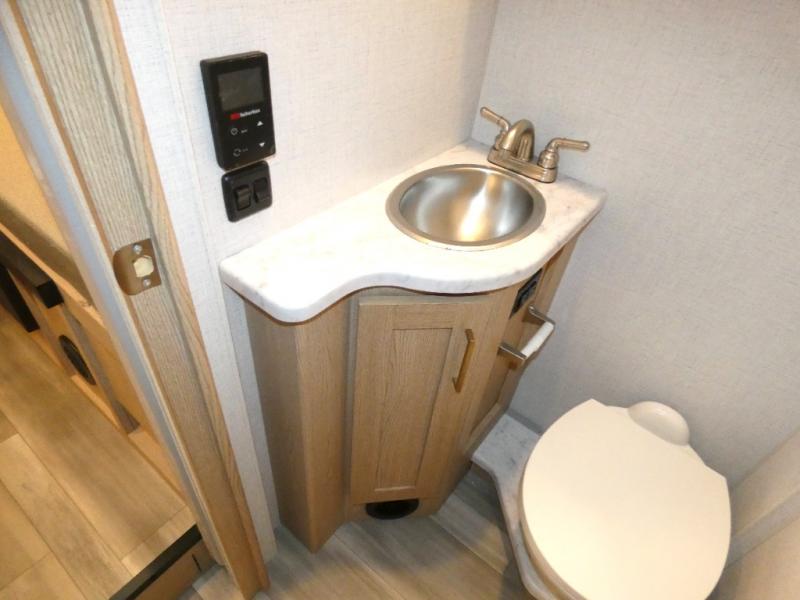 Travel comfortably in this Class C motorhome featuring a versatile sleeping space. In the rear of the coach, you might enjoy two twin beds to travel with a friend, or convert the twin beds to a king when you travel with your spouse. Plus, you will have a 52" x 87" cab-over bunk that sleeps two adults or children as well. All will enjoy the full bath amenities that offer the entire width of the unit for showering and getting dressed, and you can easily close off the toilet and vanity area for additional privacy during the day to allow access into the bedroom. There is also a skylight over the shower which adds additional headroom and natural lighting. A full kitchen including a three burner cooktop and convection microwave oven with an air fryer will let you make meals each day, and the 12V refrigerator will keep perishables fresh!
