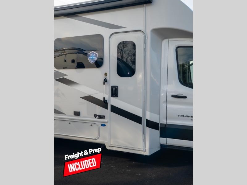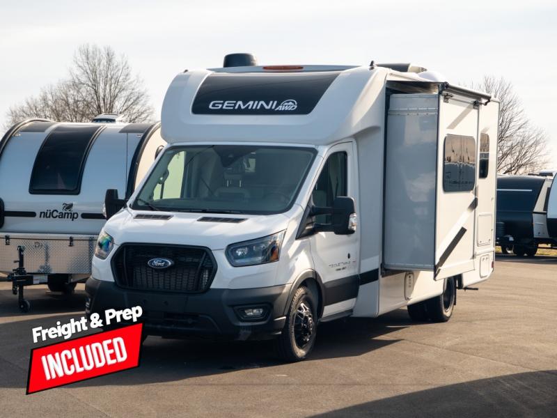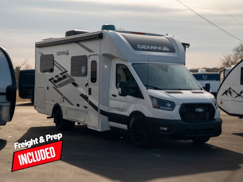 You have the ability to go anywhere with one of these Thor Motor Coach Gemini AWD Class B+ gas motorhomes! They have the perfect duo of an all-wheel-drive system and an AdvanceTrac with Roll Stability Control so you can feel safe navigating through the winding roads. Don't worry about getting lost either thanks to the AM/FM dash radio with SYNC 4, navigation, and an 8" color multi-function display. A 3.5L V6 EcoBoost turbo gas engine powers these units and a Ford Transit chassis holds them up. Stay connected with a Winegard ConnecT 2.0 with WiFi, a 4G hotspot, and even a TV antenna. You can even go off the grid with the 100-watt solar panel with a controller! Come find your favorite model today!