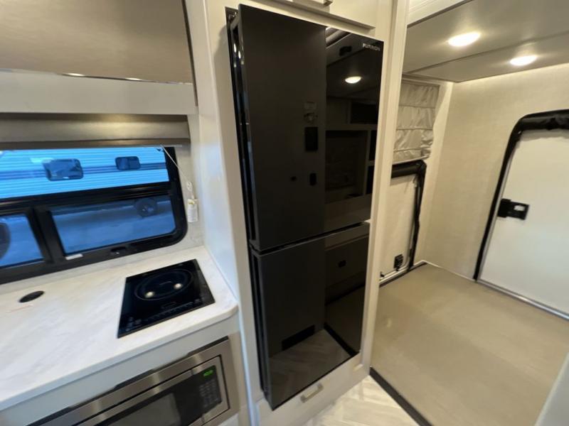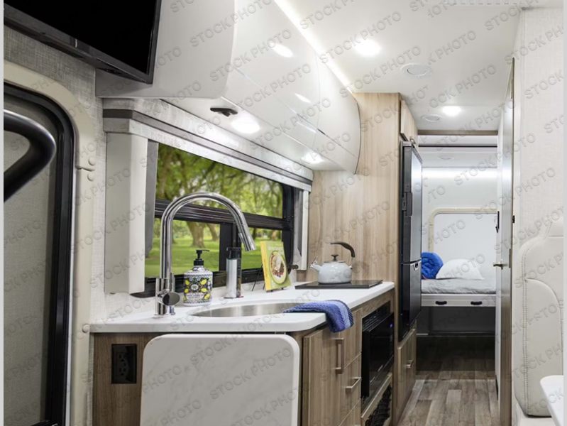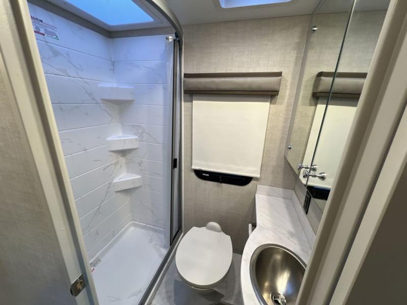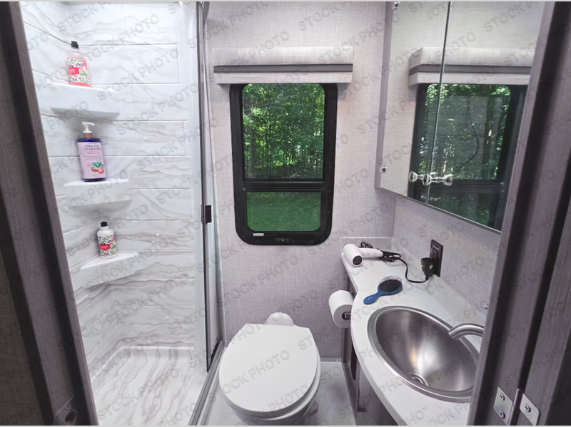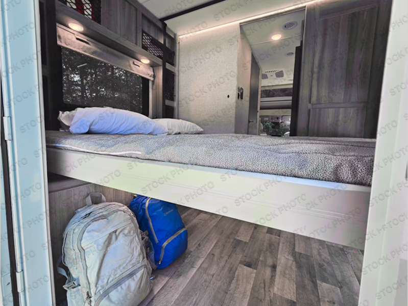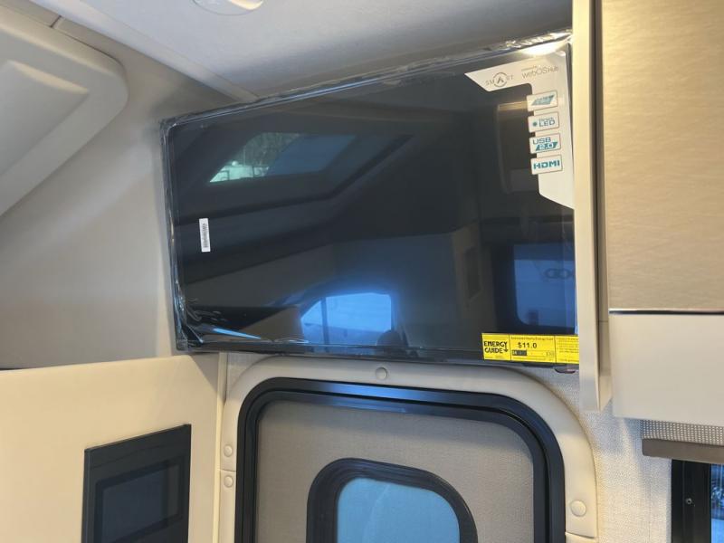 Step inside our incredible motorhome and discover a world of comfort, style, and adventure. The spacious queen-sized bunk features storage and drawers below, perfect for keeping your belongings organized and within reach. A convenient closet provides ample storage for your clothing and accessories, while the 12V double door refrigerator keeps your favorite foods and drinks fresh and chilled. The single burner countertop, microwave, and dinette with adjustable/removable table provide everything you need to prepare and enjoy delicious meals on the go. Additional features include a flip-up countertop for added convenience, and a full bathroom with a spacious 30” x 36” shower. Relax and unwind after a long day of adventure with our 32” Smart TV, perfect for streaming your favorite shows and movies.