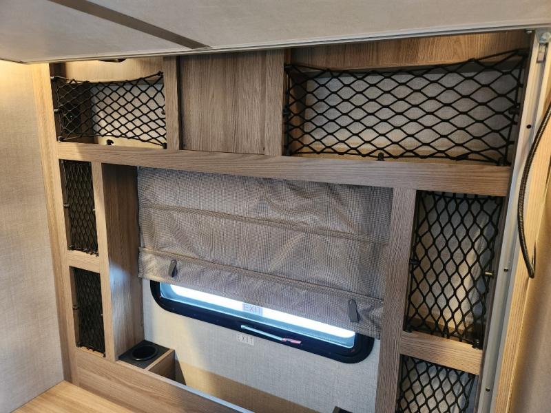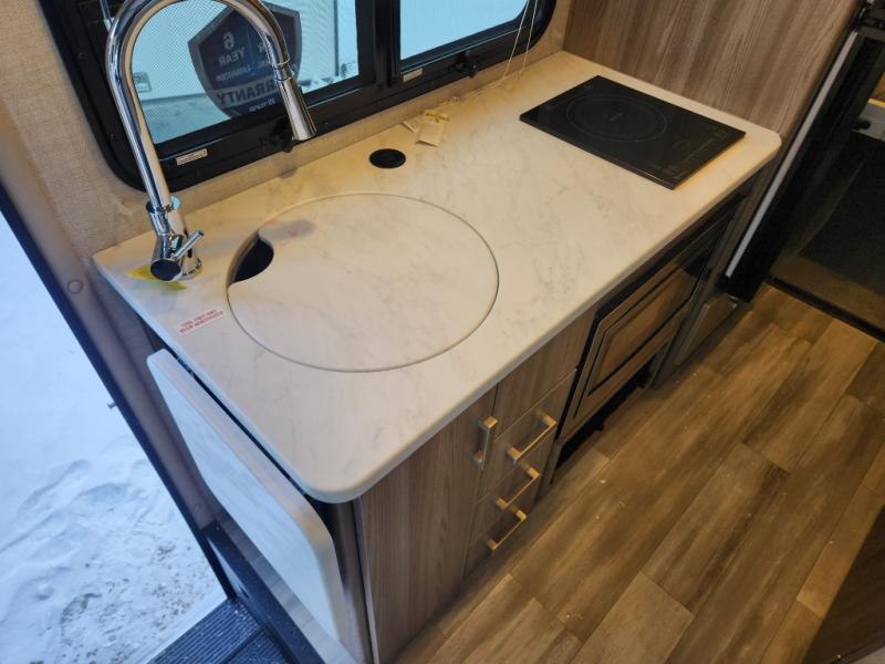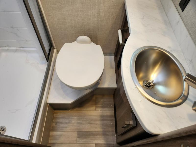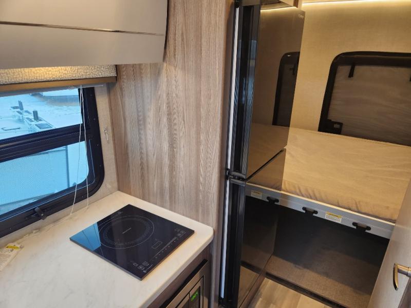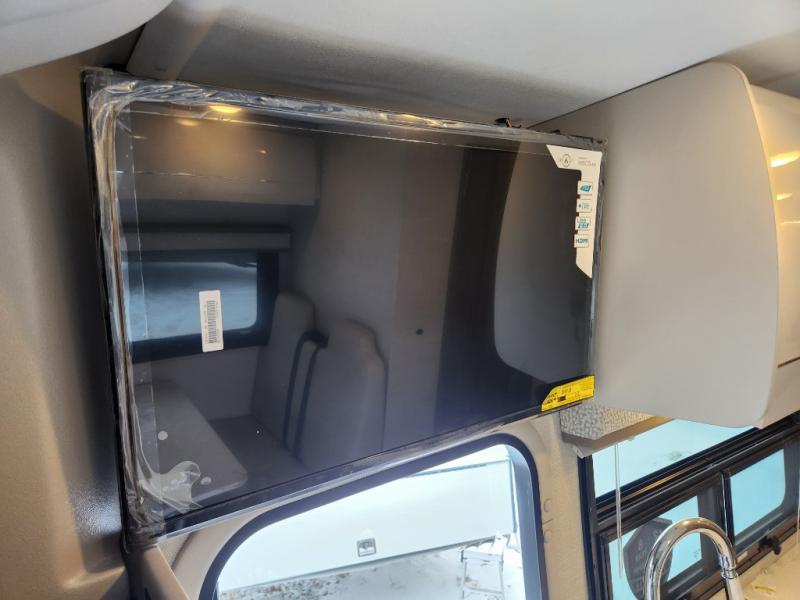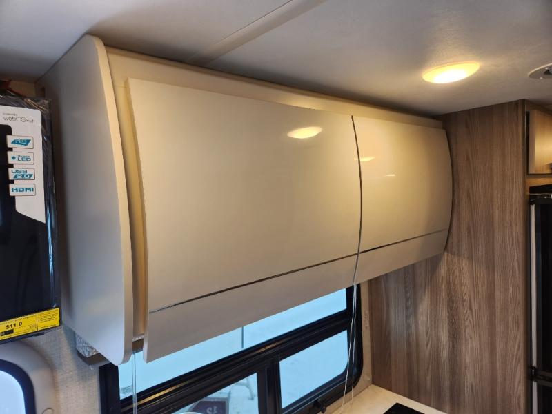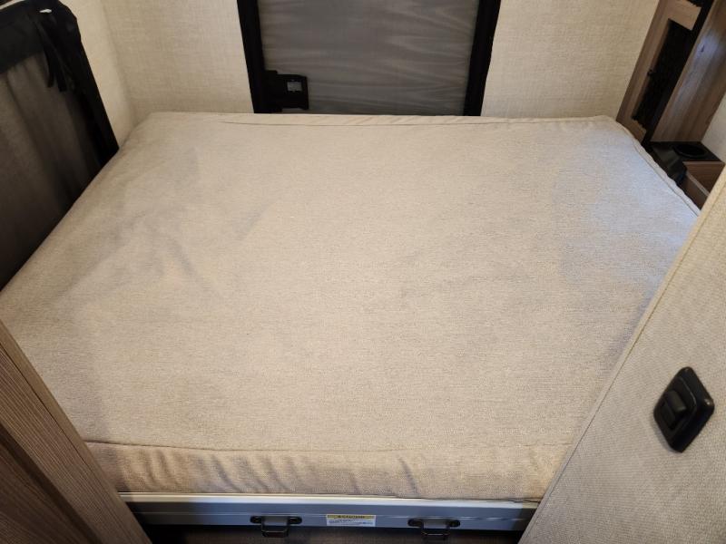 Step inside our incredible motorhome and discover a world of comfort, style, and adventure. The spacious queen-sized bunk features storage and drawers below, perfect for keeping your belongings organized and within reach. A convenient closet provides ample storage for your clothing and accessories, while the 12V double door refrigerator keeps your favorite foods and drinks fresh and chilled. The single burner countertop, microwave, and dinette with adjustable/removable table provide everything you need to prepare and enjoy delicious meals on the go. Additional features include a flip-up countertop for added convenience, and a full bathroom with a spacious 30” x 36” shower. Relax and unwind after a long day of adventure with our 32” Smart TV, perfect for streaming your favorite shows and movies.
