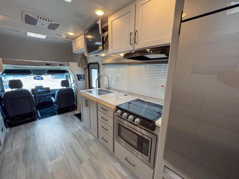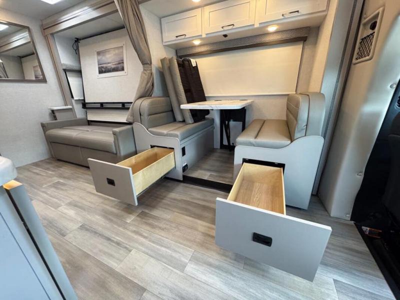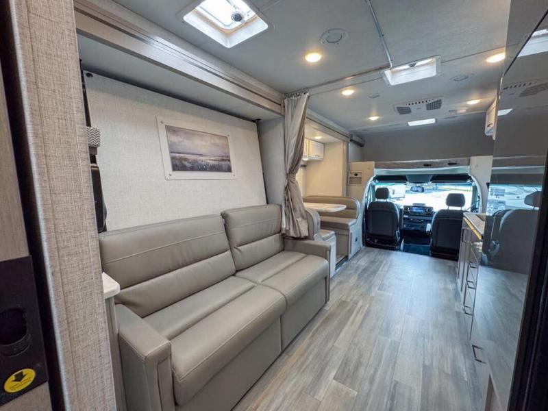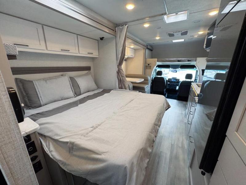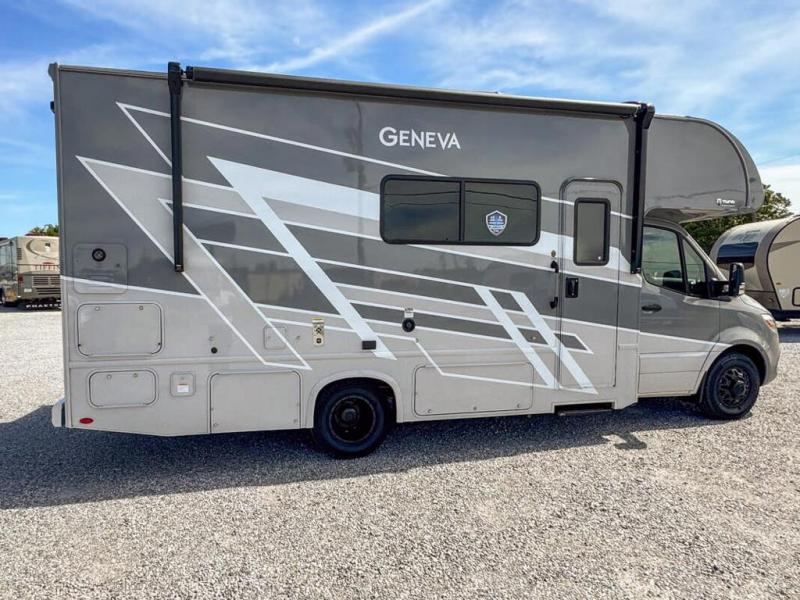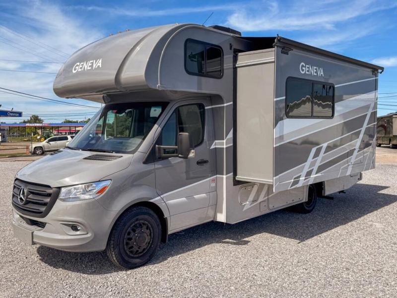 You will feel right at home in the Geneva Class C diesel motorhomes by Thor Motor Coach! There is a reliable Mercedes-Benz Sprinter chassis with a 2.0L I-4 engine to power your adventures. You are sure to appreciate the Mercedes-Benz Safety Package that includes active braking assist, active lane keeping assist, distance regulator distronic plus and more! The sleek full body paint with black wheels and invisible front paint protection is sure to catch your eye, and the automatic leveling jacks with touchpad controls will have you set up in no-time! Inside, you'll find residential vinyl flooring, two-toned cabinetry, pressed laminate countertops, and a shower skylight to name a few comforts!