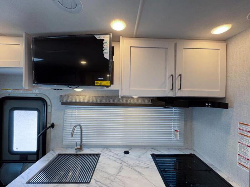 You'll love this versatile coach that features a full-wall slide for added space. The dream dinette and sofa with a Murphy bed is found here so you can enjoy comfy seating and sleeping spaces. There is also a 32" smart TV in the living area plus a privacy curtain around the bed if you have guests staying over on the cab-over bunk. A full rear bath includes a 24" x 36" shower to freshen up, along with a skylight, foot flush toilet and convenient robe hook(s). When you've worked up an appetite, the full kitchen with a three burner gas cooktop and convection microwave will let you make your best meals!