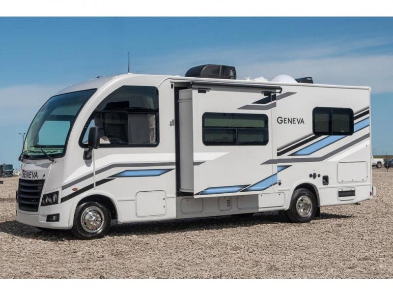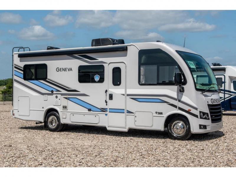 MSRP $172,335. Motor Home Specialist is proud to introduce the all-new Thor Motor Coach Geneva, an exciting new luxury class A RV to complement our incredible line-up of Thor A Class RVs including the Thor Axis, Vegas, Resonate and A.C.E! The Geneva is packed with features that include a Ford V8 engine, solar charging system, holding tank with heat pads, second auxiliary house battery, 4.0 gas generator, twin sofa bed with king conversion, convection microwave with air fryer, dual burner gas cooktop with electric start, 12v refrigerator with auto generator start, valve stem extenders on rear wheels, 10" dash radio with Android Auto/APple Car Play with back-up monitor and much more. Optional features include the power drop down overhead bunk. **Unit Not California CARB Compliant and Cannot be Registered in California**. Shop hundreds of class C gas RVs at 1 location! Choose from Fleetwood Altitude - Gulf Stream BT Cruiser - Thor Chateau - Four Winds - Geneva and Quantum - Entegra Coach Odyssey Odyssey SE and Esteem - East to West Entrada - Forest River Forester - Forester LE - Nexus Phantom - Viper and much more. We also sell quality pre-owned models such as Jayco Greyhawk – Redhawk - Redhawk SE - Thor Magnitude - Winnebago Spirit - and Minnie Winnie - Coachmen Freelander and Leprechaun - Forest River Sunseeker Classic - Sunseeker LE – Solera - Holiday Rambler Incline and much more. Visit MHSRV.com for our complete line-up and the sale prices that have made us the #1 volume selling motor home dealership in the world 12 years in a row! For additional details on this unit and our entire inventory including brochures, window sticker, videos, photos, reviews & testimonials as well as additional information about Motor Home Specialist and our manufacturers please visit us at MHSRV.com or call 800-335-6054. At Motor Home Specialist, we DO NOT charge any prep or orientation fees like you will find at other dealerships. All sale prices include a 200-point inspection, interior & exterior wash, detail service and a fully automated high-pressure rain booth test and coach wash that is a standout service unlike that of any other in the industry. You will also receive a thorough coach orientation with an MHSRV technician, a night stay in our delivery park featuring landscaped and covered pads with full hook-ups and much more! Read Thousands upon Thousands of 5-Star Reviews at MHSRV.com and See What They Had to Say About Their Experience at Motor Home Specialist. WHY PAY MORE? WHY SETTLE FOR LESS?