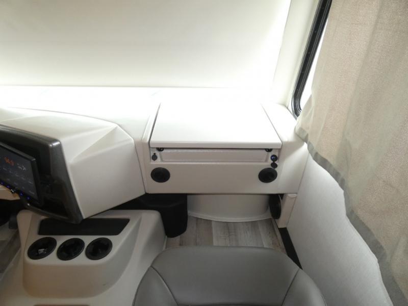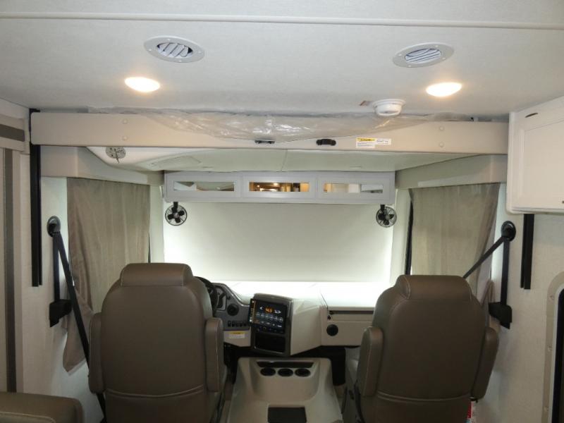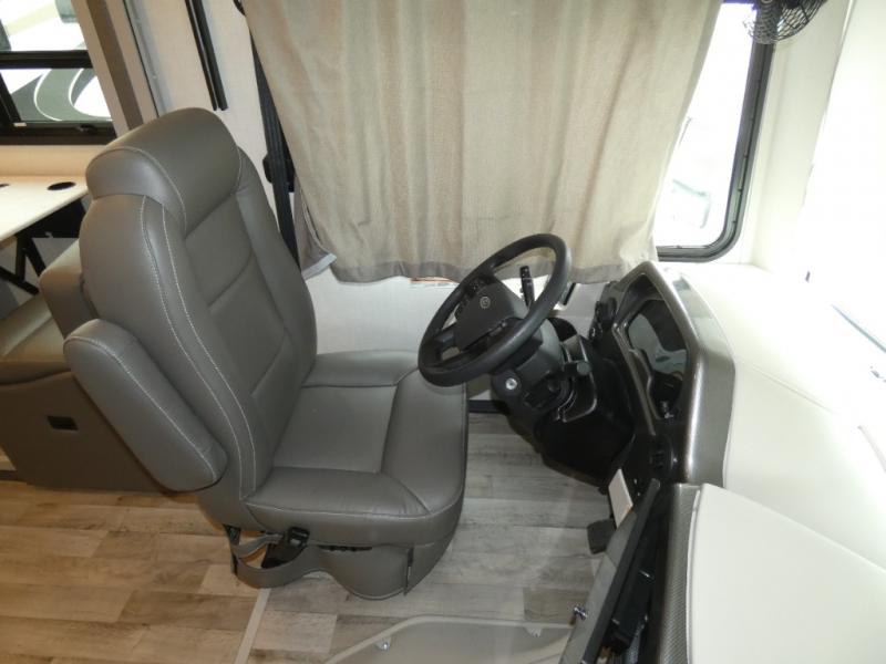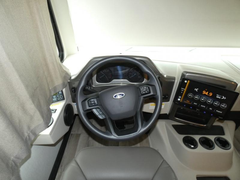 With any Hurricane Class A gas motorhome by Thor Motor Coach you will appreciate solid construction materials, like the premium one-piece Crossflex roof, welded tubular steel floor and the Vacu-Bond laminated roof, walls, and floor with block foam insulation. Each model sits on a Ford F-53 chassis with a 7.3L Triton V8 engine for power you can feel, plus there is an 8,000 lb. trailer hitch with a 7-pin round connector to pull your car along. The Rapid Camp+ multiplex system with Bluetooth will allow you to easily set up camp from the convenient 7" touchscreen provided, and the Winegard ConnecT WiFi extender +4G will let you catch up on work if needed. The Hurricane includes pressed laminated countertops inside, as well as residential vinyl flooring, decorative glass and tile backsplash in the kitchen, and many more at-home comforts.