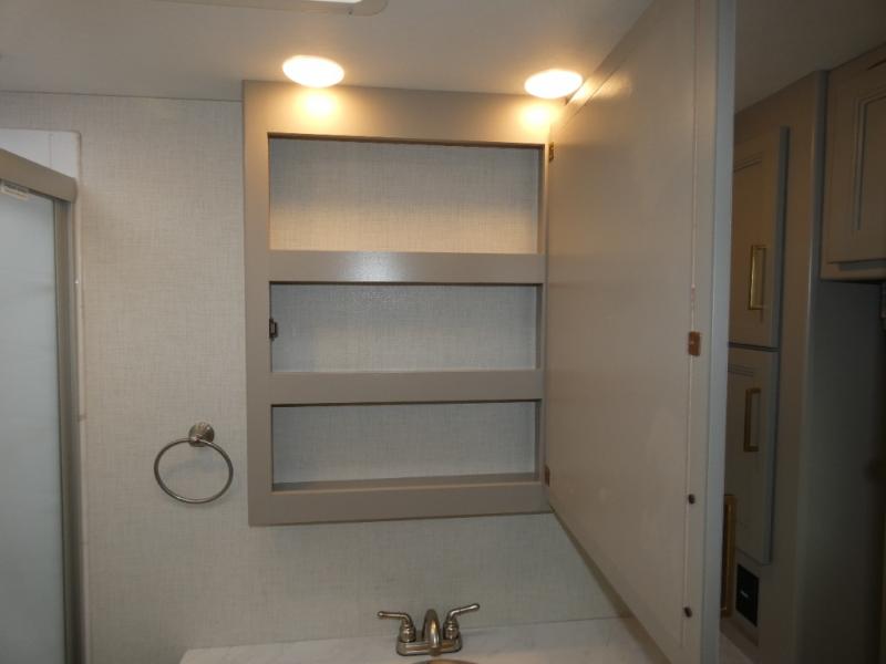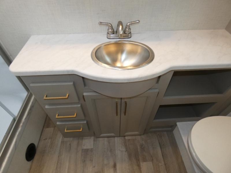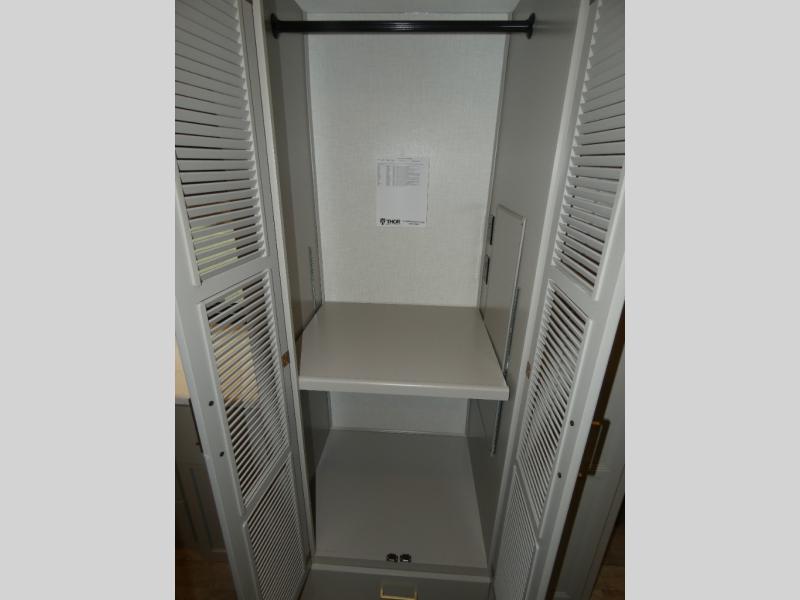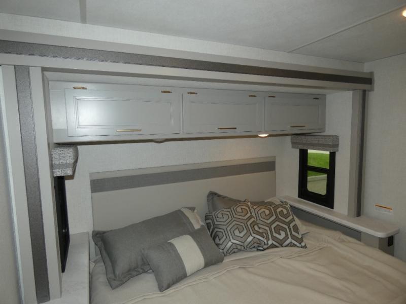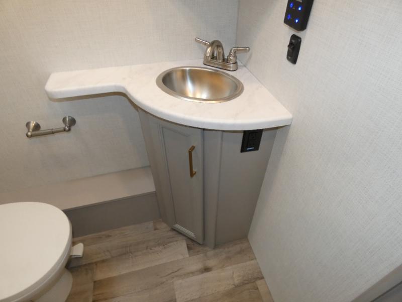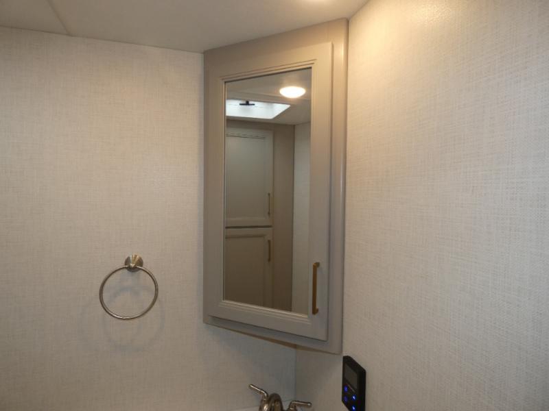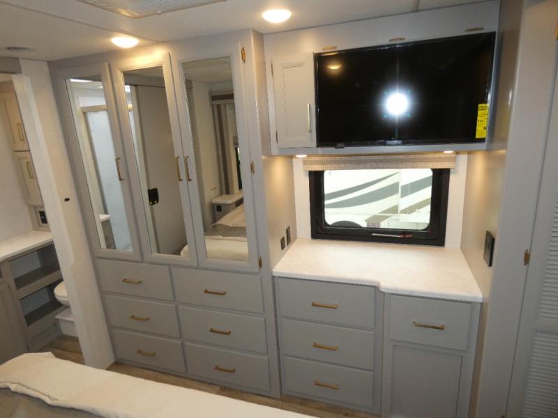 A bath and a half in this coach make it perfect for trips with friends and family. You will have tons of space provided by the two slide outs, plus a sleeping capacity of six to seven people each night. The expanding sofa bed has a great view of the 40" LED Smart TV, and the Dream Dinette will be great for meal times and game night. Whip up a hearty meal on the three burner gas cooktop, or use the convenient over-the-range microwave oven. There is also a 19 cu. ft. residential double door stainless refrigerator and a pantry for food storage. You'll be very pleased with the master bedroom that includes a king bed, a 32" LED Smart TV, and a closet to keep your clothes wrinkle-free.
