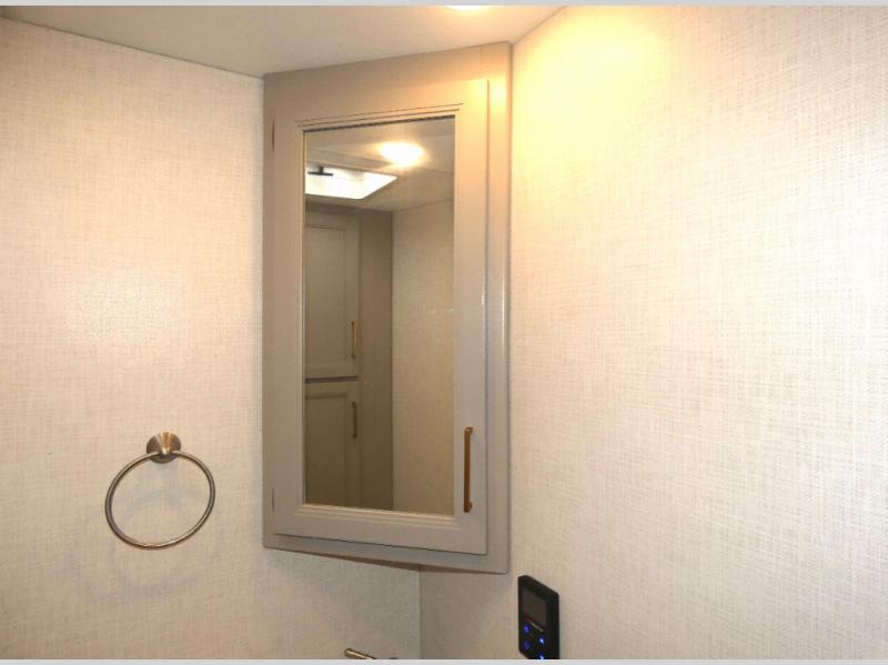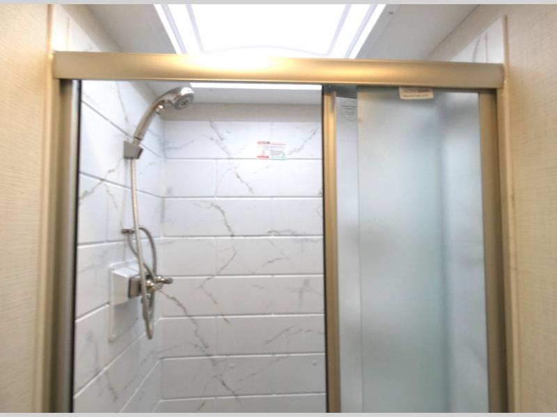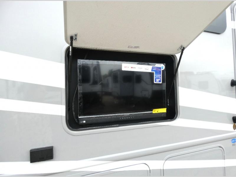 A bath and a half in this coach make it perfect for trips with friends and family. You will have tons of space provided by the two slide outs, plus a sleeping capacity of six to seven people each night. The expanding sofa bed has a great view of the 40" LED Smart TV, and the Dream Dinette will be great for meal times and game night. Whip up a hearty meal on the three burner gas cooktop, or use the convenient over-the-range microwave oven. There is also a 19 cu. ft. residential double door stainless refrigerator and a pantry for food storage. You'll be very pleased with the master bedroom that includes a king bed, a 32" LED Smart TV, and a closet to keep your clothes wrinkle-free.