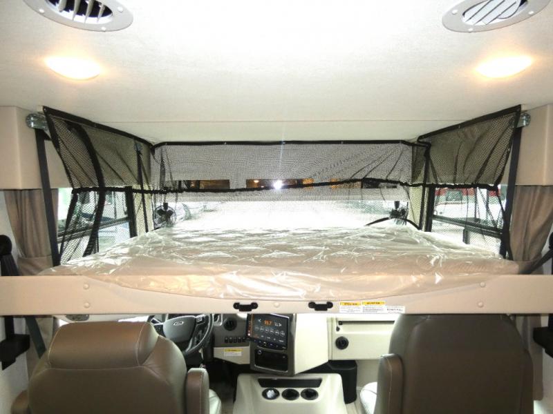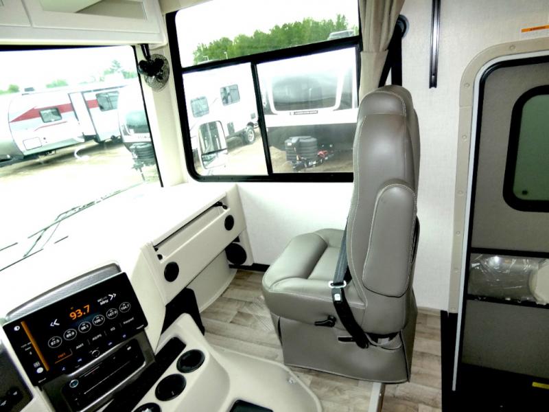 With any Hurricane Class A gas motorhome by Thor Motor Coach you will appreciate solid construction materials, like the premium one-piece Crossflex roof, welded tubular steel floor and the Vacu-Bond laminated roof, walls, and floor with block foam insulation. Each model sits on a Ford F-53 chassis with a 7.3L Triton V8 engine for power you can feel, plus there is an 8,000 lb. trailer hitch with a 7-pin round connector to pull your car along. The Rapid Camp+ multiplex system with Bluetooth will allow you to easily set up camp from the convenient 7" touchscreen provided, and the Winegard ConnecT WiFi extender +4G will let you catch up on work if needed. The Hurricane includes pressed laminated countertops inside, as well as residential vinyl flooring, decorative glass and tile backsplash in the kitchen, and many more at-home comforts.