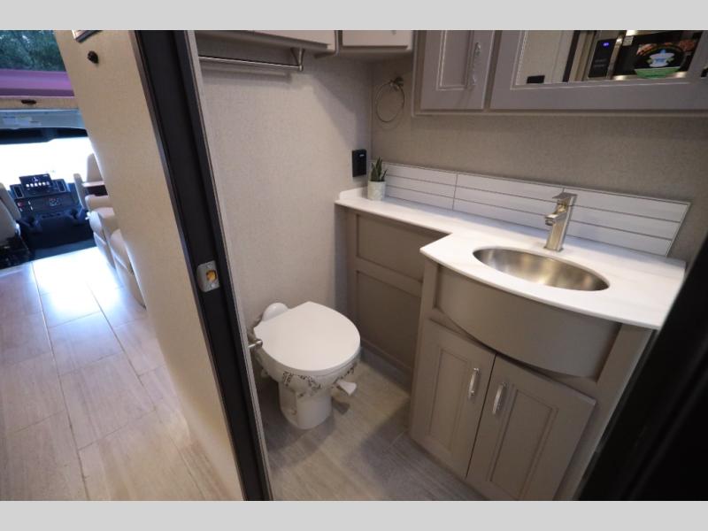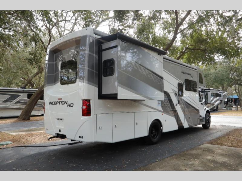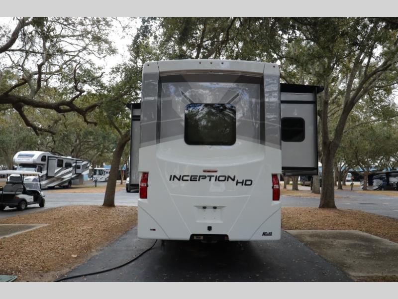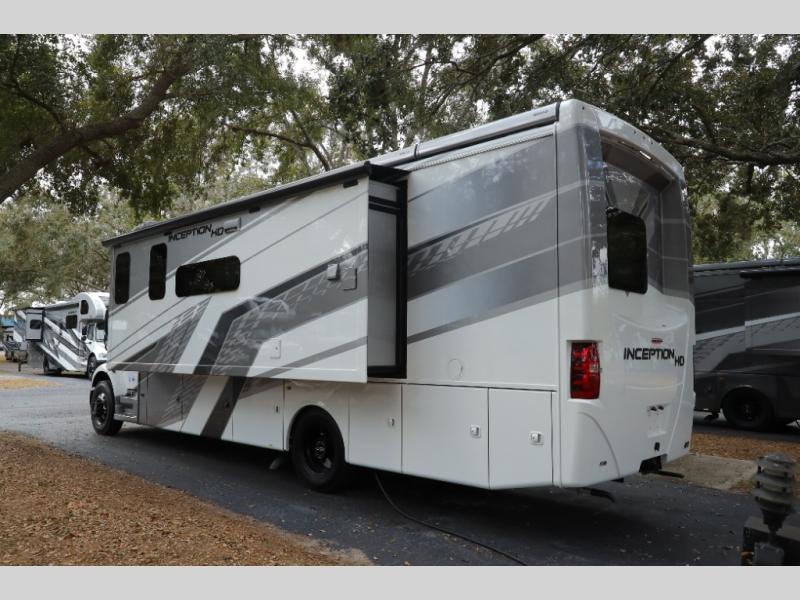 Every aspect of these Thor Motor Coach Inception Super C diesel motorhomes have been designed to increase your comfort of living on the road! The S2RV Freightliner chassis with an Atlas foundation is ultra durable and its power comes from an ISB-XT Cummins 6.7L 360 HP engine. It will be hard to ignore these modern masterpieces on the road with their sleek and functional fiberglass front cap with a windshield, one-piece fiberglass rear cap, and full-body paint with gel coated sidewalls. The Pet-Link multi-purpose tie-down will let you bring along your furry friends, and the massive external basement pass-through storage area is perfect for surfboards, fishing poles, folding bikes, and other outdoor gear. Entertainment is found all throughout between the Winegard ConnecT 5.0 that works as a WiFi extender, and the LED TVs in the living area, bedroom, and exterior. Come find your favorite one today!