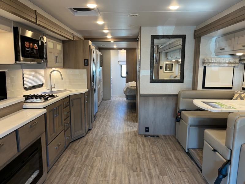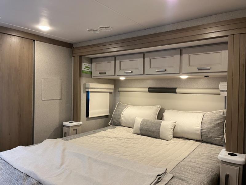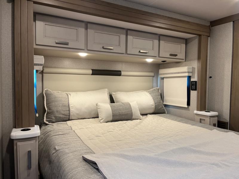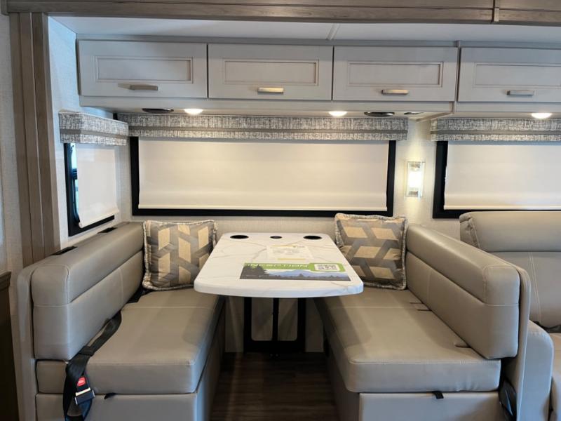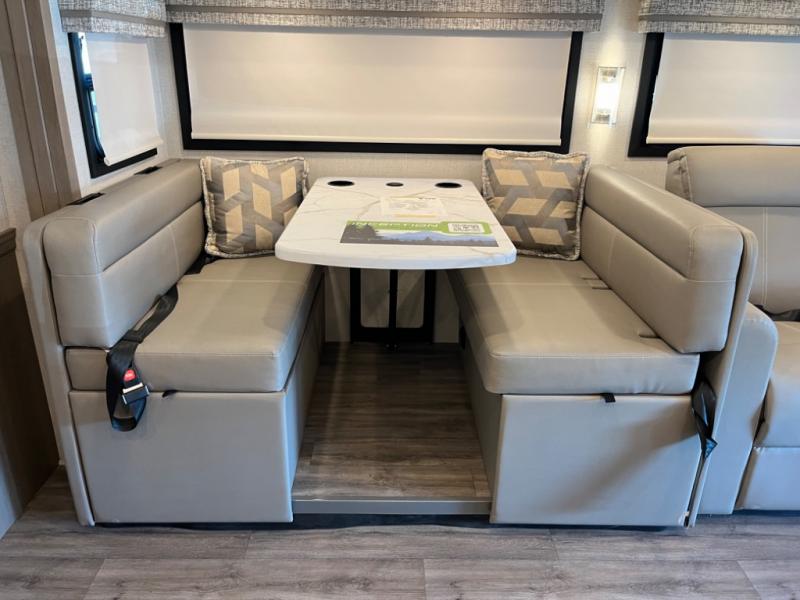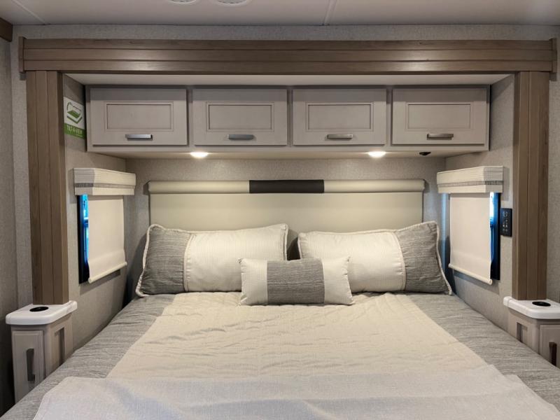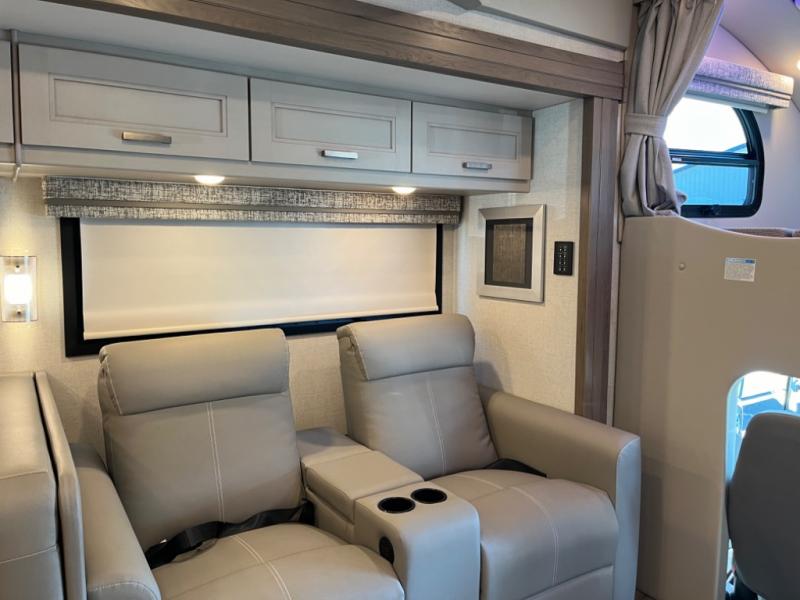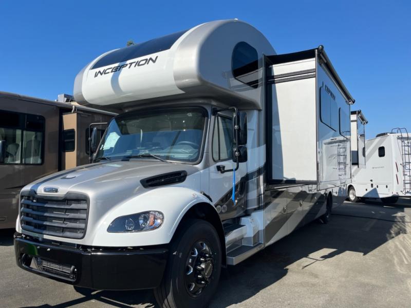 Every aspect of these Thor Motor Coach Inception Super C diesel motorhomes have been designed to increase your comfort of living on the road! The S2RV Freightliner chassis with an Atlas foundation is ultra durable and its power comes from an ISB-XT Cummins 6.7L 360 HP engine. It will be hard to ignore these modern masterpieces on the road with their sleek and functional fiberglass front cap with a windshield, one-piece fiberglass rear cap, and full-body paint with gel coated sidewalls. The Pet-Link multi-purpose tie-down will let you bring along your furry friends, and the massive external basement pass-through storage area is perfect for surfboards, fishing poles, folding bikes, and other outdoor gear. Entertainment is found all throughout between the Winegard ConnecT 5.0 that works as a WiFi extender, and the LED TVs in the living area, bedroom, and exterior. Come find your favorite one today!