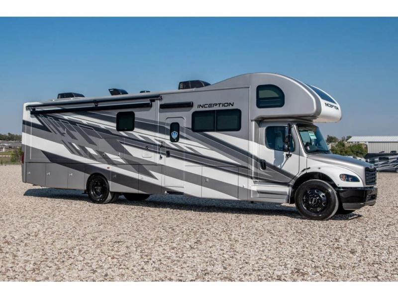 MSRP $351,309. New 2026 Thor Motor Coach Inception 38FX. This luxury Super C is approximately 39 feet 10 inches in length with a Freightliner chassis, Cummins 6.7L ISB engine w/360HP, Tilt-A-View inclining King Bed, stainless residential refrigerator with ice maker, exterior entertainment center, fireplace, and a spacious dream dinette. Options include the solar charging system. This beautiful motorhome includes upgraded features such as the dual 15K BTU A/Cs with dual heat pumps, LVT tile flooring, solar charging now monitored through the Firefly monitor panel, shower miser, Oxygenics shower head, new hardwood cabinet doors, new decorative mirror and the upgraded storage box in home theater seating. The Inception has an incredible list of standard features including the air-ride suspension, full-hydraulic automatic leveling jack system, 8KW Onan diesel generator, solar panel, tankless water heater, legless power patio awning, frameless dual pane windows, Winegard ConnecT 4G Wi-Fi System and much more. **Unit Not California CARB Compliant and Cannot be Registered in California**. Shop hundreds of motorhomes including Super C RVs at 1 location! Choose from Entegra Accolade – Accolade XL – Accolade XT – Esteem XL – Dynamax DX3 – Dynaquest XL – Europa – isata 5 - Thor Magnitude – Magnitude Grand – Omni – Omni Trail – Pasadena – Inception - East to West Bravado – Nexus Ghost – Wraith – Rebel – Verrado and much more. We also sell quality pre-owned models such as Jayco Seneca XT – Seneca – Seneca Prestige - Greyhawk XL – Tiffin Allegro Bay – Newmar Super Star – Supreme Aire – Renegade Veracruz – Valencia – Verona – Verona LE – Explorer – Coachmen Entourage and much more. Visit MHSRV.com for our complete line-up and the sale prices that have made us the #1 volume selling motor home dealership in the world 12 years in a row! For additional details on this unit and our entire inventory including brochures, window sticker, videos, photos, reviews & testimonials as well as additional information about Motor Home Specialist and our manufacturers please visit us at MHSRV.com or call 800-335-6054. At Motor Home Specialist, we DO NOT charge any prep or orientation fees like you will find at other dealerships. All sale prices include a multi-point inspection, interior & exterior wash, detail service and a fully automated high-pressure rain booth test and coach wash that is a standout service unlike that of any other in the industry. You will also receive a thorough coach orientation with an MHSRV technician, a night stay in our delivery park featuring landscaped and covered pads with full hook-ups and much more! Read Thousands upon Thousands of 5-Star Reviews at MHSRV.com and see what they had to say about their experience at Motor Home Specialist. MHSRV.com or 800-335-6054 - Why Pay More? Why Settle for Less?