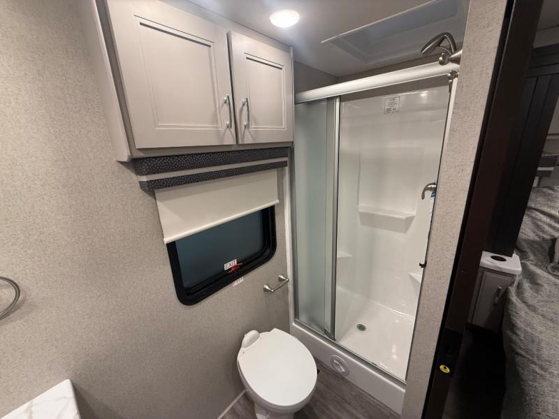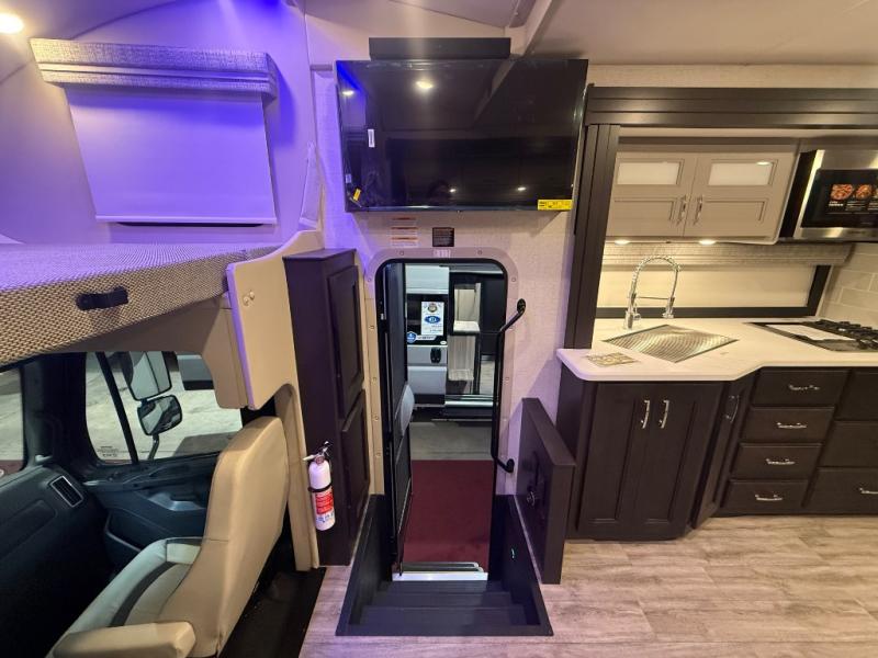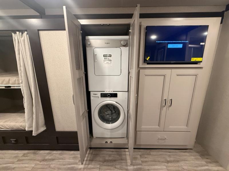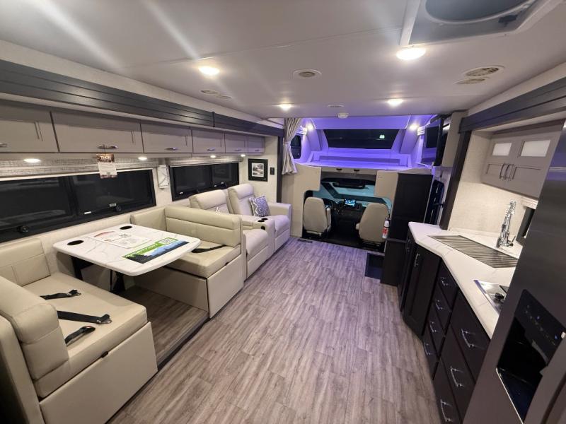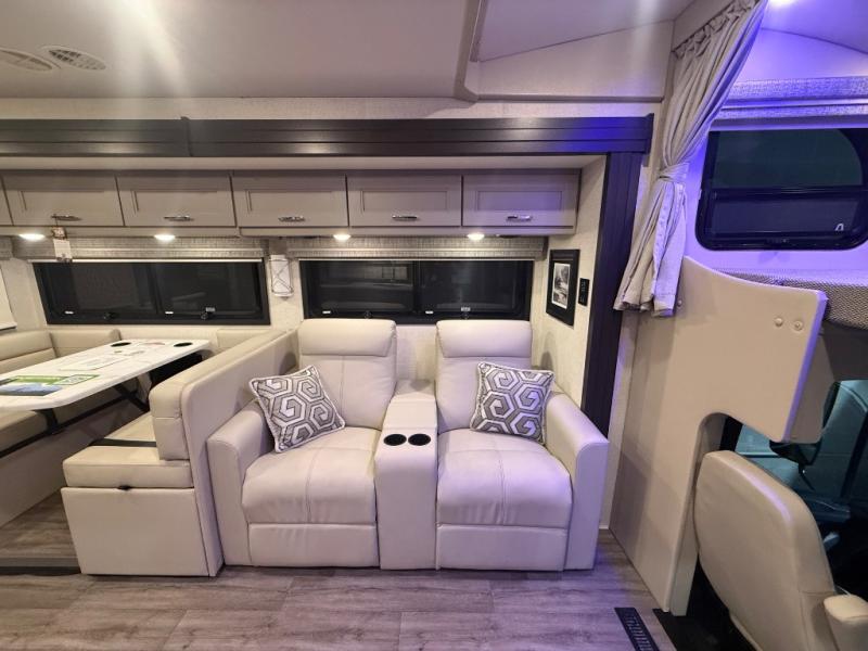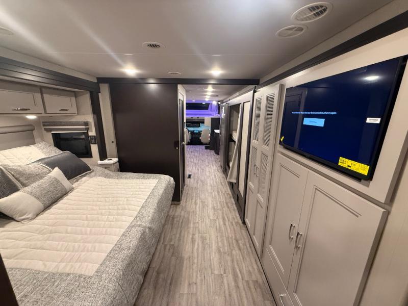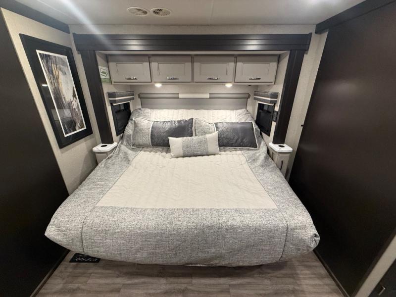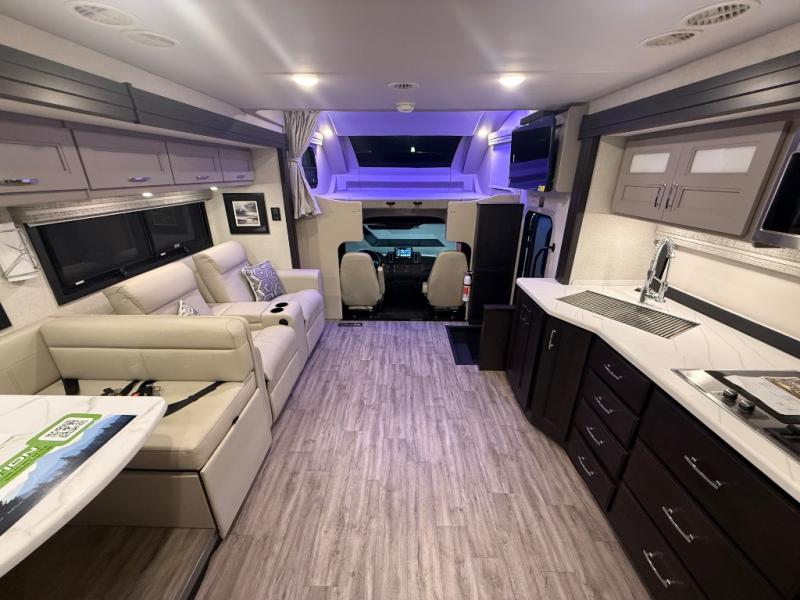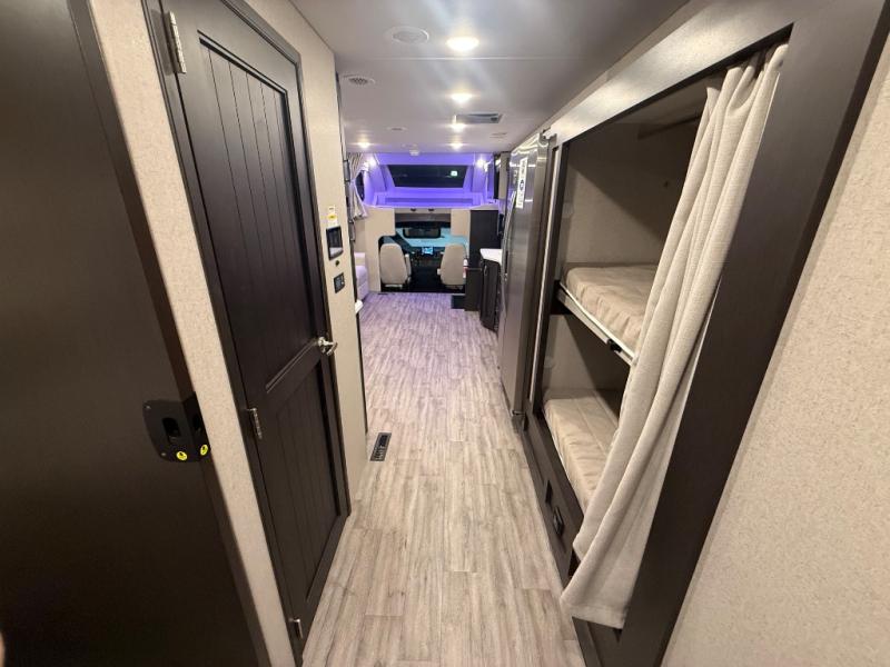 Experience the ultimate in motorhome luxury with this incredible Class C! Retreat to the serene bedroom, featuring a tilt a view inclining king bed, spacious closet, 32” Smart LED TV, and stackable washer and dryer for ultimate convenience. The kids will love the 27” x 74” bunk beds also, stay fresh and clean with the rear bathroom and convenient half bathroom. The kitchen is incredible, equipped with a pantry, residential refrigerator, microwave, and two-burner cooktop. Gather with family and friends at the 78” dream dinette, perfect for meals and game nights. The living room boasts 68” theater seating, a TV, and a pantry for snacks and drinks, plus, the 52” x 80” bunk-over cab area offers additional sleeping space. Finally, the 40” exterior LED TV provides outdoor entertainment, and the 20” awning offers an incredible space to perform outdoor activities. Perfect for family vacations or weekend getaways.