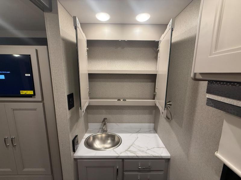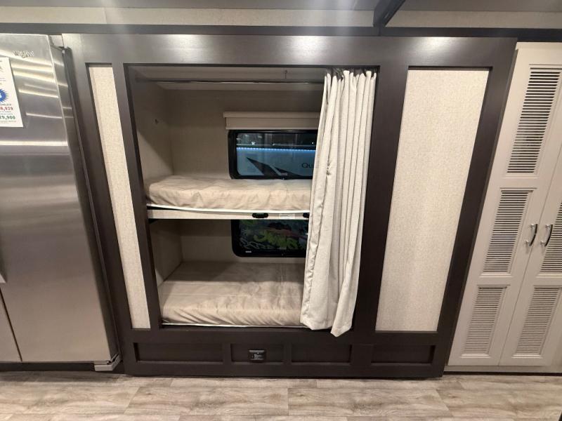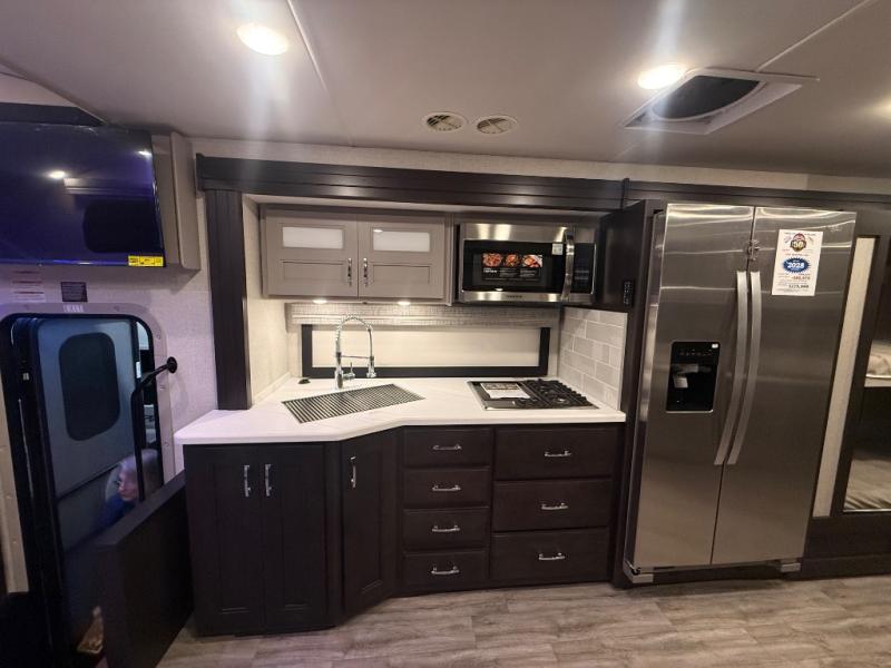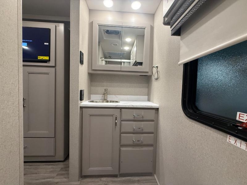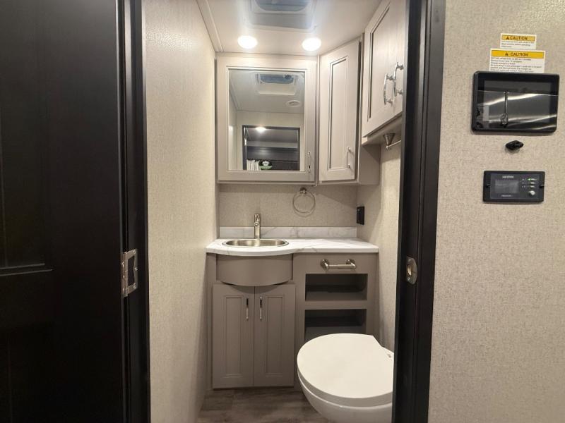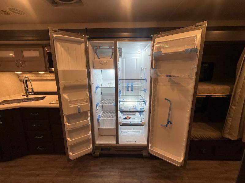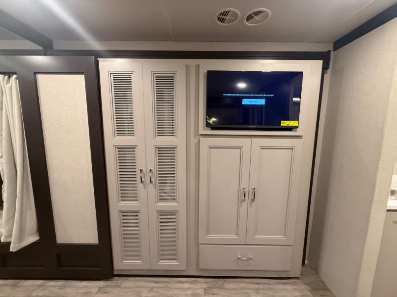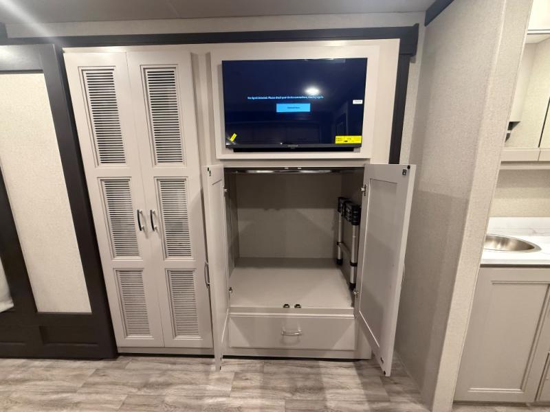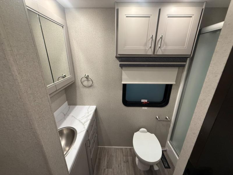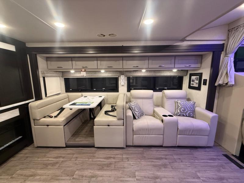 Experience the ultimate in motorhome luxury with this incredible Class C! Retreat to the serene bedroom, featuring a tilt a view inclining king bed, spacious closet, 32” Smart LED TV, and stackable washer and dryer for ultimate convenience. The kids will love the 27” x 74” bunk beds also, stay fresh and clean with the rear bathroom and convenient half bathroom. The kitchen is incredible, equipped with a pantry, residential refrigerator, microwave, and two-burner cooktop. Gather with family and friends at the 78” dream dinette, perfect for meals and game nights. The living room boasts 68” theater seating, a TV, and a pantry for snacks and drinks, plus, the 52” x 80” bunk-over cab area offers additional sleeping space. Finally, the 40” exterior LED TV provides outdoor entertainment, and the 20” awning offers an incredible space to perform outdoor activities. Perfect for family vacations or weekend getaways.