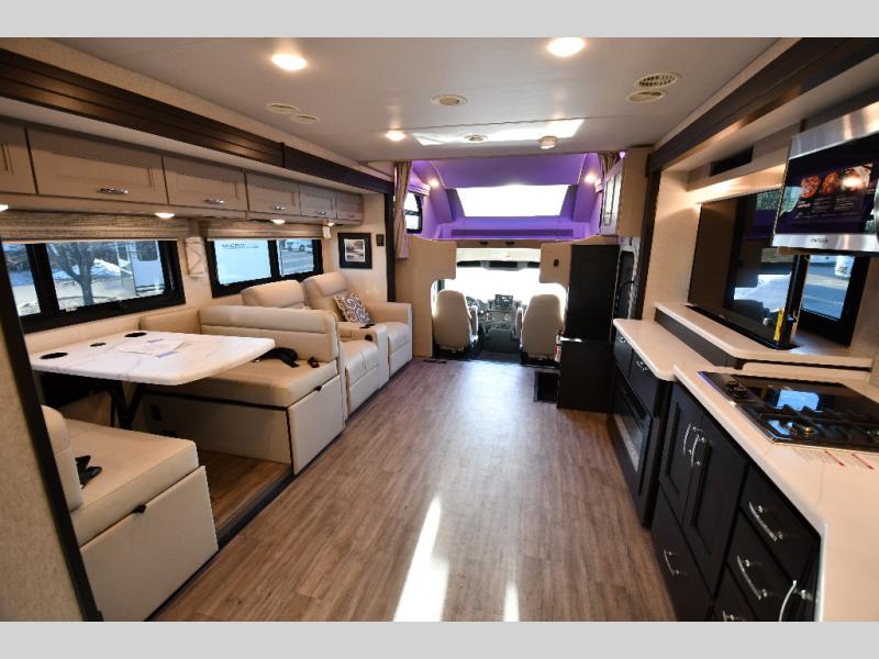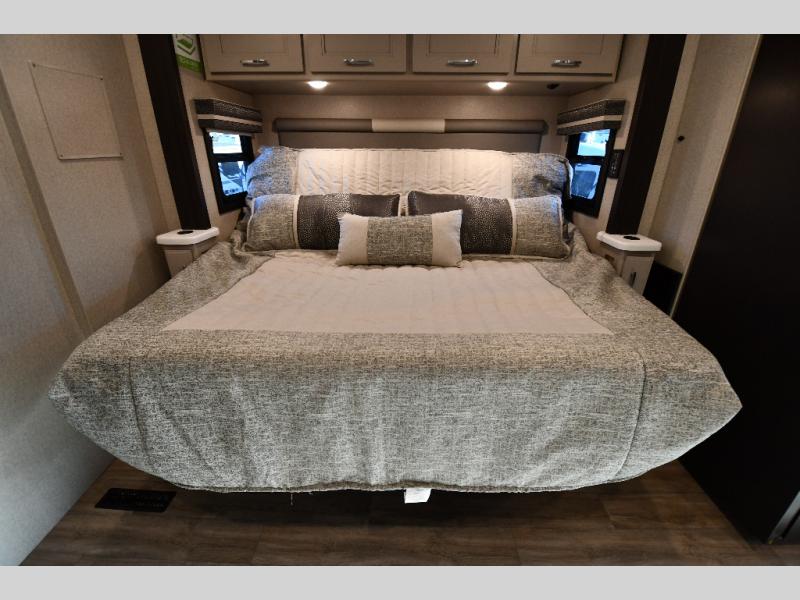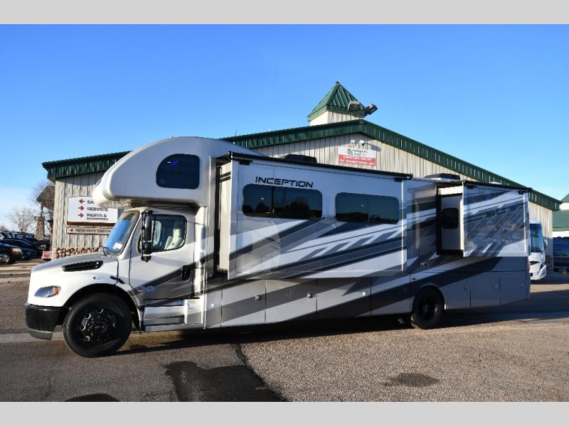 Every aspect of these Thor Motor Coach Inception Super C diesel motorhomes have been designed to increase your comfort of living on the road! The S2RV Freightliner chassis with an Atlas foundation is ultra durable and its power comes from an ISB-XT Cummins 6.7L 360 HP engine. It will be hard to ignore these modern masterpieces on the road with their sleek and functional fiberglass front cap with a windshield, one-piece fiberglass rear cap, and full-body paint with gel coated sidewalls. The Pet-Link multi-purpose tie-down will let you bring along your furry friends, and the massive external basement pass-through storage area is perfect for surfboards, fishing poles, folding bikes, and other outdoor gear. Entertainment is found all throughout between the Winegard ConnecT 5.0 that works as a WiFi extender, and the LED TVs in the living area, bedroom, and exterior. Come find your favorite one today!