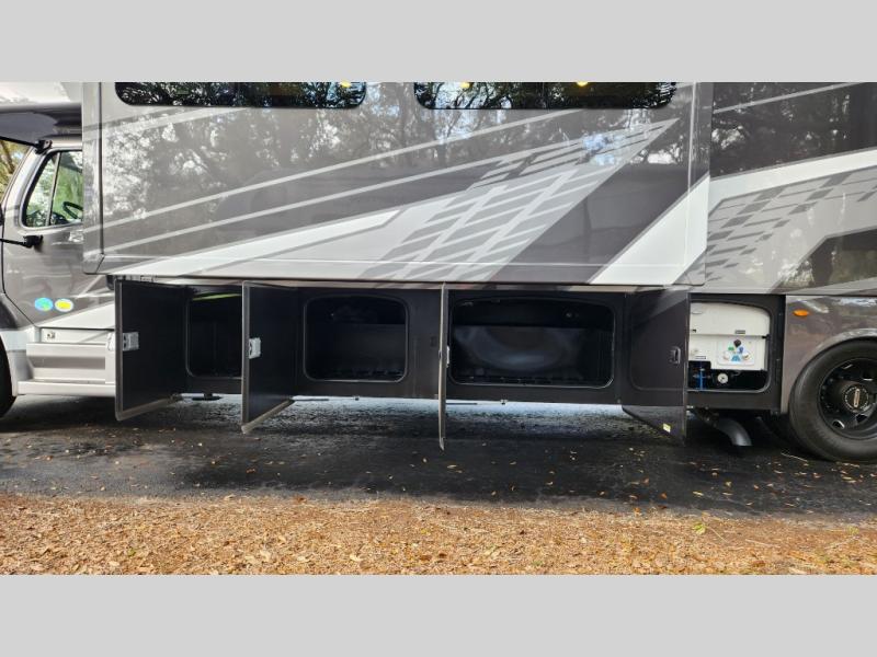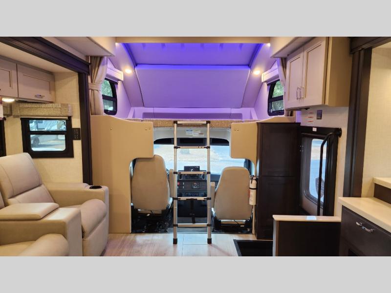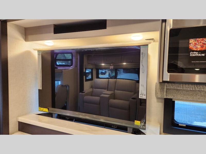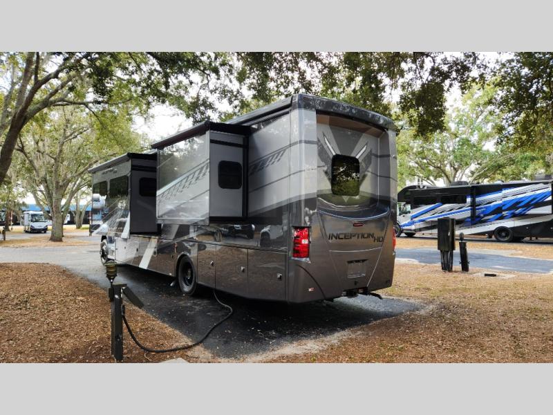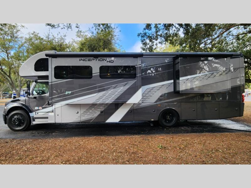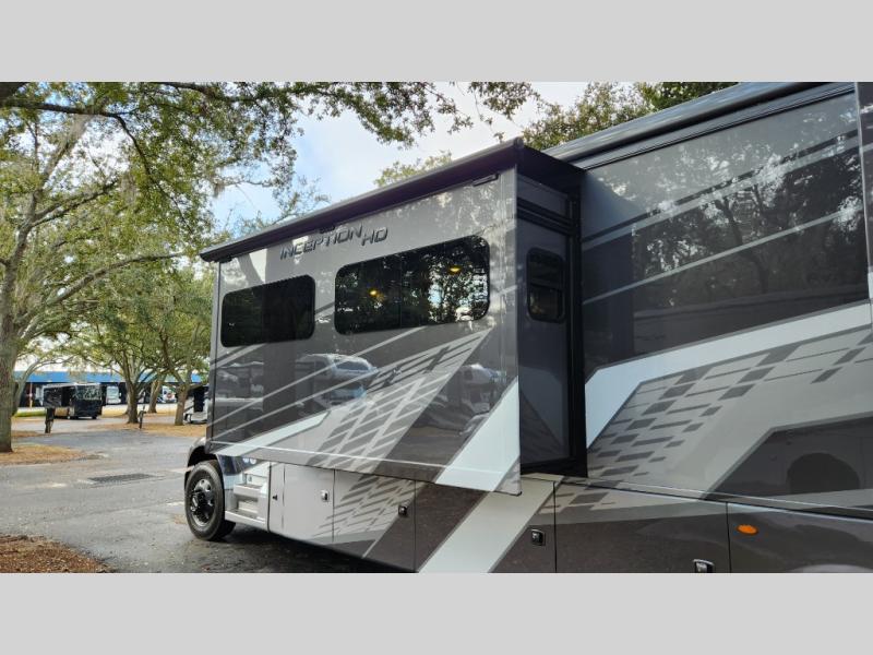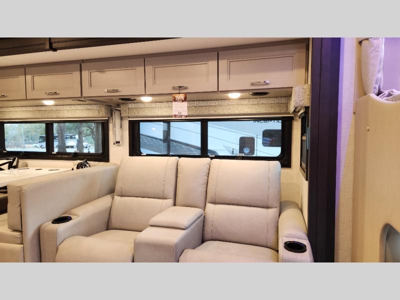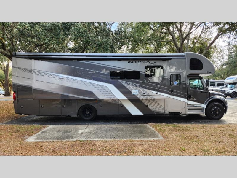 Every aspect of these Thor Motor Coach Inception Super C diesel motorhomes have been designed to increase your comfort of living on the road! The S2RV Freightliner chassis with an Atlas foundation is ultra durable and its power comes from an ISB-XT Cummins 6.7L 360 HP engine. It will be hard to ignore these modern masterpieces on the road with their sleek and functional fiberglass front cap with a windshield, one-piece fiberglass rear cap, and full-body paint with gel coated sidewalls. The Pet-Link multi-purpose tie-down will let you bring along your furry friends, and the massive external basement pass-through storage area is perfect for surfboards, fishing poles, folding bikes, and other outdoor gear. Entertainment is found all throughout between the Winegard ConnecT 5.0 that works as a WiFi extender, and the LED TVs in the living area, bedroom, and exterior. Come find your favorite one today!