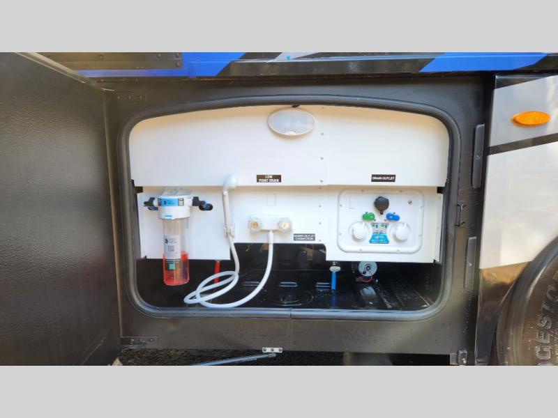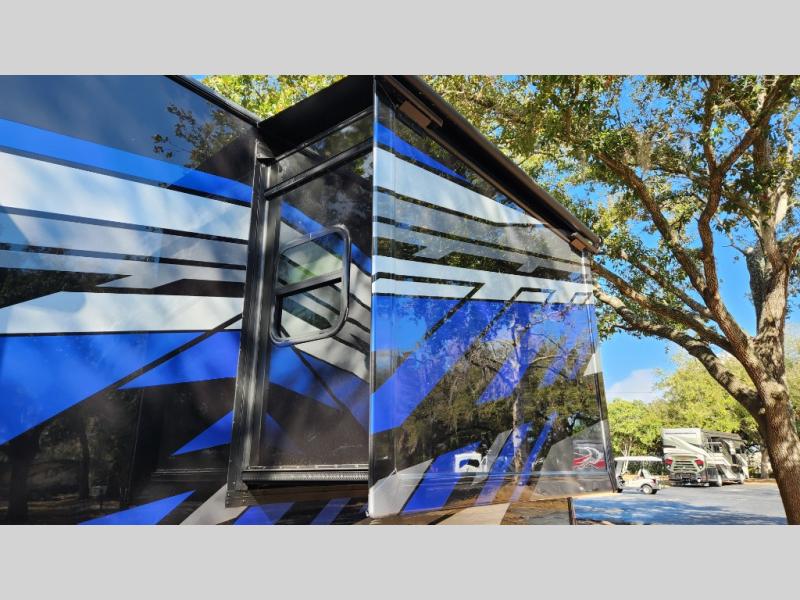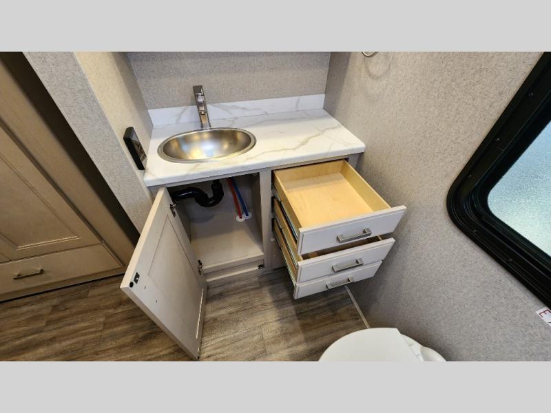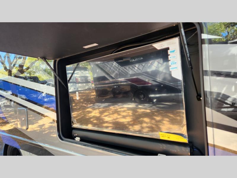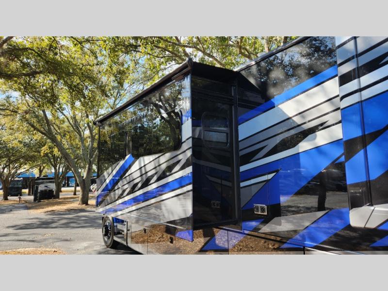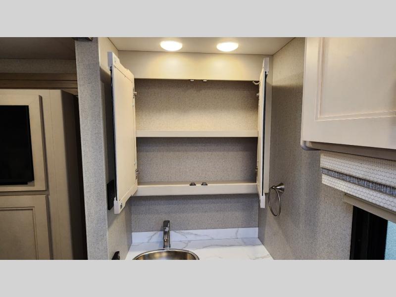 Experience the ultimate in motorhome luxury with this incredible Class C! Retreat to the serene bedroom, featuring a tilt a view inclining king bed, spacious closet, 32” Smart LED TV, and stackable washer and dryer for ultimate convenience. The kids will love the 27” x 74” bunk beds also, stay fresh and clean with the rear bathroom and convenient half bathroom. The kitchen is incredible, equipped with a pantry, residential refrigerator, microwave, and two-burner cooktop. Gather with family and friends at the 78” dream dinette, perfect for meals and game nights. The living room boasts 68” theater seating, a TV, and a pantry for snacks and drinks, plus, the 52” x 80” bunk-over cab area offers additional sleeping space. Finally, the 40” exterior LED TV provides outdoor entertainment, and the 20” awning offers an incredible space to perform outdoor activities. Perfect for family vacations or weekend getaways.