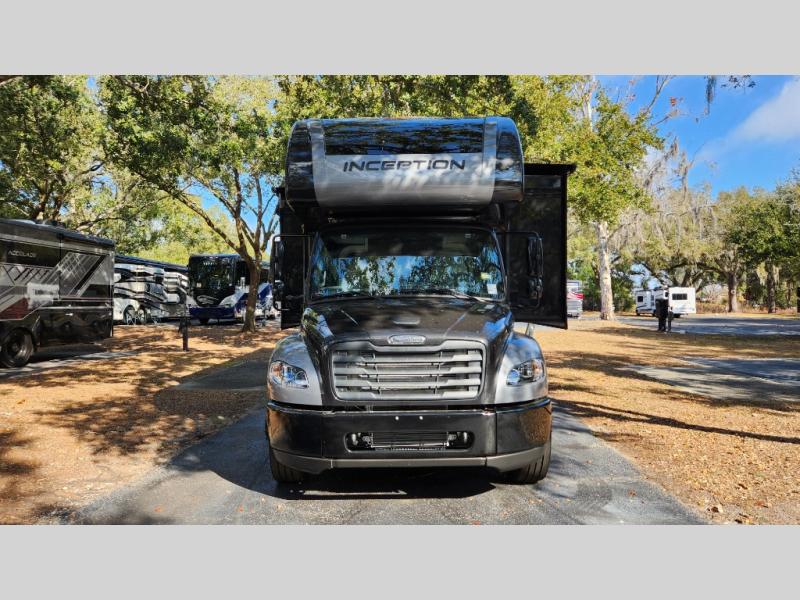 Every aspect of these Thor Motor Coach Inception Super C diesel motorhomes have been designed to increase your comfort of living on the road! The S2RV Freightliner chassis with an Atlas foundation is ultra durable and its power comes from an ISB-XT Cummins 6.7L 360 HP engine. It will be hard to ignore these modern masterpieces on the road with their sleek and functional fiberglass front cap with a windshield, one-piece fiberglass rear cap, and full-body paint with gel coated sidewalls. The Pet-Link multi-purpose tie-down will let you bring along your furry friends, and the massive external basement pass-through storage area is perfect for surfboards, fishing poles, folding bikes, and other outdoor gear. Entertainment is found all throughout between the Winegard ConnecT 5.0 that works as a WiFi extender, and the LED TVs in the living area, bedroom, and exterior. Come find your favorite one today!