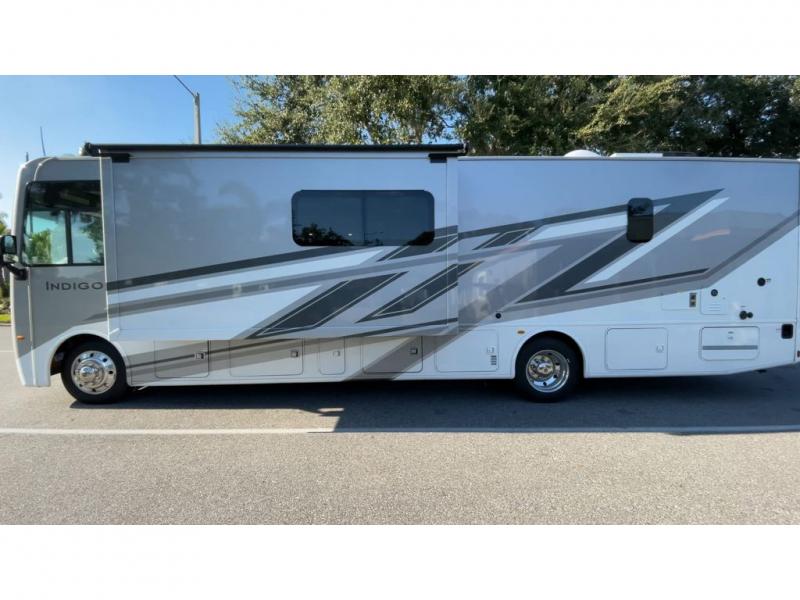 There's something for everyone in the Thor Motor Coach Indigo Class A gas motorhome! Built on the Ford F-53 chassis, with family-friendly designs and features that will make your life easier, these are worth considering. The 7.3L PFI V8 engine offers 335HP and 468 lb.-ft. of torque for power you can rely on, and the one-piece domed roof membrane is ultra durable. Residential vinyl flooring throughout is comfortable and easy to care for, while the solid surface countertops make your kitchen look great. Multiple TVs means there's no fighting over what to watch, and the Winegard ConnecT 5.0 Wi-Fi extender will help keep you connected as you camp. Each model also includes a 300-watt solar charging system, dual 13,500 BTU roof A/C units, a tankless water heater, and many more hassle-free amenities!