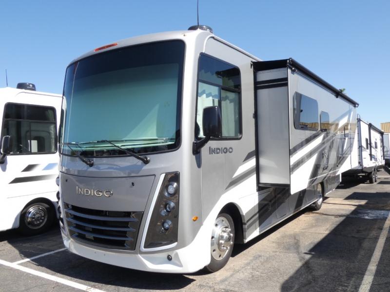 There's something for everyone in the Thor Motor Coach Indigo Class A gas motorhome! Built on the Ford F-53 chassis, with family-friendly designs and features that will make your life easier, these are worth considering. The 7.3L PFI V8 engine offers 335HP and 468 lb.-ft. of torque for power you can rely on, and the one-piece domed roof membrane is ultra durable. Residential vinyl flooring throughout is comfortable and easy to care for, while the solid surface countertops make your kitchen look great. Multiple TVs means there's no fighting over what to watch, and the Winegard ConnecT 5.0 Wi-Fi extender will help keep you connected as you camp. Each model also includes a 300-watt solar charging system, dual 13,500 BTU roof A/C units, a tankless water heater, and many more hassle-free amenities!