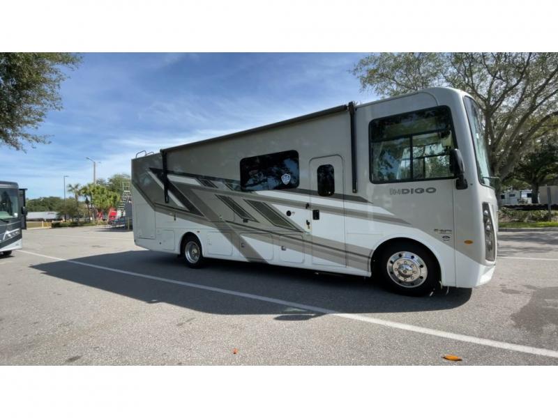 There's something for everyone in the Thor Motor Coach Indigo Class A gas motorhome! Built on the Ford F-53 chassis, with family-friendly designs and features that will make your life easier, these are worth considering. The 7.3L PFI V8 engine offers 335HP and 468 lb.-ft. of torque for power you can rely on, and the one-piece domed roof membrane is ultra durable. Residential vinyl flooring throughout is comfortable and easy to care for, while the solid surface countertops make your kitchen look great. Multiple TVs means there's no fighting over what to watch, and the Winegard ConnecT 5.0 Wi-Fi extender will help keep you connected as you camp. Each model also includes a 300-watt solar charging system, dual 13,500 BTU roof A/C units, a tankless water heater, and many more hassle-free amenities!