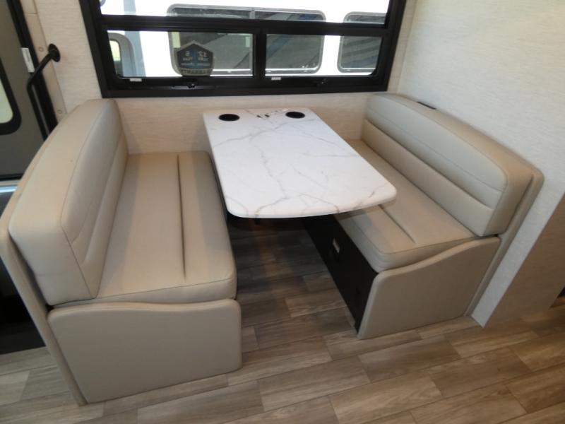 There's something for everyone in the Thor Motor Coach Luminate class A gas motorhome! Built on the Ford F53 chassis, with family-friendly designs and features that will make your life easier, these are worth considering. Residential vinyl flooring throughout is comfortable and easy to care for, while the solid surface countertops make your kitchen look great. Multiple TVs mean there's no fighting over what to watch, and a high-tech driver console adds Bluetooth®, Android Auto™, Apple CarPlay® and Sirius/XM® Radio via a 14-inch touchscreen so you can listen to whatever music you like. The dinette booth has a wireless phone charger with integrated USB plug for charging convenience, or use the dash workstation which has 100-volt and 12-volt outlets.