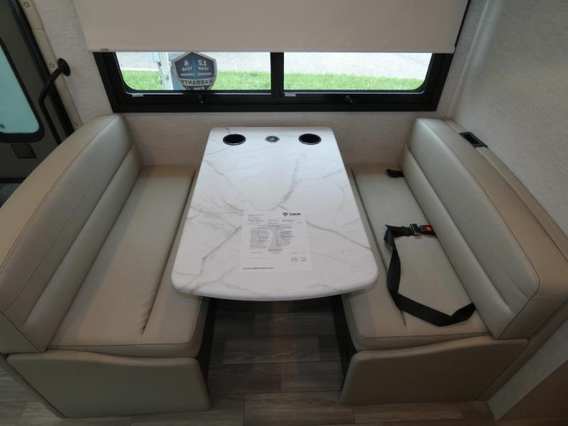 There's something for everyone in the Thor Motor Coach Luminate class A gas motorhome! Built on the Ford F53 chassis, with family-friendly designs and features that will make your life easier, these are worth considering. Residential vinyl flooring throughout is comfortable and easy to care for, while the solid surface countertops make your kitchen look great. Multiple TVs mean there's no fighting over what to watch, and a high-tech driver console adds Bluetooth®, Android Auto™, Apple CarPlay® and Sirius/XM® Radio via a 14-inch touchscreen so you can listen to whatever music you like. The dinette booth has a wireless phone charger with integrated USB plug for charging convenience, or use the dash workstation which has 100-volt and 12-volt outlets.