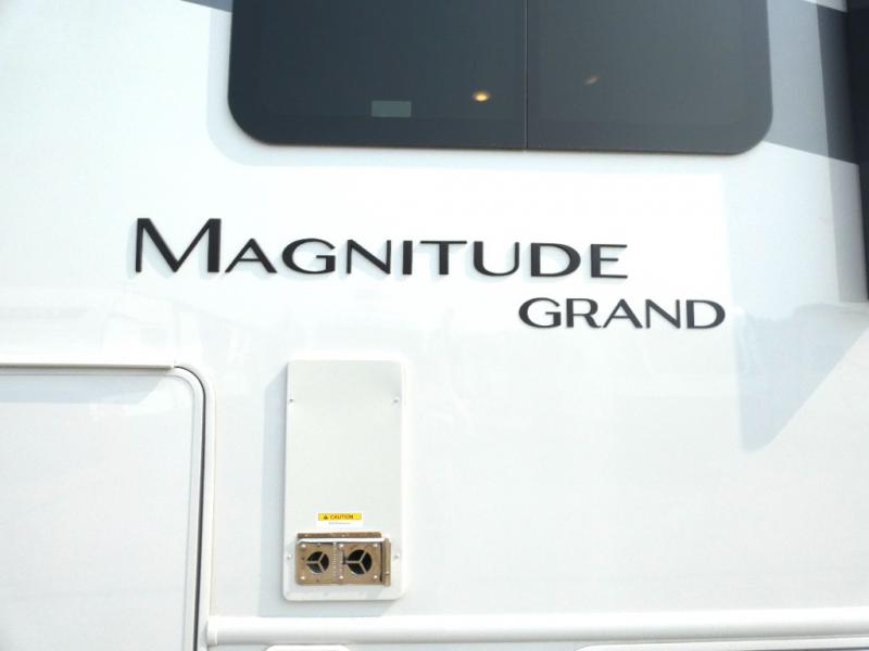 The Magnitude GRAND Super C diesel motorhomes by Thor Motor Coach are built to last, featuring Vacu-bond laminated roofs and floors with block foam insulation for unparalleled durability and climate control which ensures a comfortable and quiet living space. Stay connected and entertained on the go with the innovative sync-enhanced voice recognition communication and entertainment system. With just the sound of your voice, you can control everything from navigation to music playlists. Setting up camp has never been easier, thanks to our automatic leveling jacks with a touchpad, simply press a button and let the system do the work for you. Inside, you'll enjoy incredible interior features like a spacious 84” interior ceiling height, perfect for comfortable living, solid countertops, designer headboard, bedspread, and pillow shams. Plus you can beat the heat with the dual 13,500 BTU roof air conditioners, providing superior cooling power to keep you comfortable in even the warmest climates. Explore our motorhome collection today and discover a new standard of luxury and adventure.