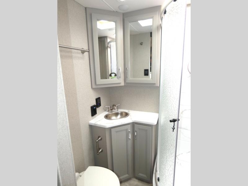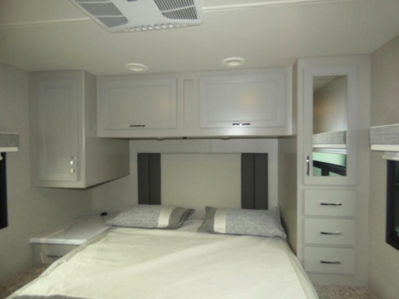 This motorhome has everything you need to create unforgettable memories on the road. Retreat to the serene rear bedroom, featuring a plush queen bed, dual wardrobe beside the bed, and a 32” Smart TV. Conveniently located in the hallway are a closet with washer and dryer prep, and a pantry for storing all your essentials. In front of it, you'll find a spacious full bathroom with a linen closet, perfect for freshening up on the go. The kitchen boasts a residential refrigerator, three-burner cooktop, microwave, and 70” Dream Dinette. Relax and unwind in the 68” theater seating, while watching the 40” Smart TV located over the cab, plus, additional sleeping space is available in the 52” x 80” bunk over cab. And when you're ready to take the party outside, enjoy your favorite shows and movies on the exterior 32” Smart TV.