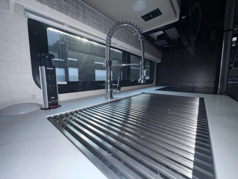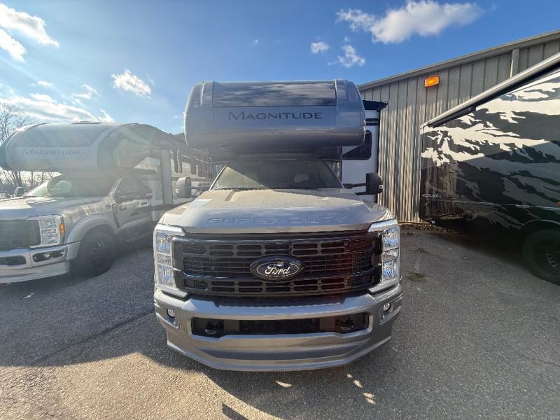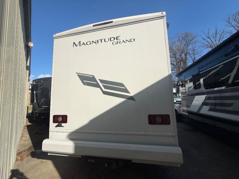 The Magnitude GRAND Super C diesel motorhomes by Thor Motor Coach are built to last, featuring Vacu-bond laminated roofs and floors with block foam insulation for unparalleled durability and climate control which ensures a comfortable and quiet living space. Stay connected and entertained on the go with the innovative sync-enhanced voice recognition communication and entertainment system. With just the sound of your voice, you can control everything from navigation to music playlists. Setting up camp has never been easier, thanks to our automatic leveling jacks with a touchpad, simply press a button and let the system do the work for you. Inside, you'll enjoy incredible interior features like a spacious 84” interior ceiling height, perfect for comfortable living, solid countertops, designer headboard, bedspread, and pillow shams. Plus you can beat the heat with the dual 13,500 BTU roof air conditioners, providing superior cooling power to keep you comfortable in even the warmest climates. Explore our motorhome collection today and discover a new standard of luxury and adventure.