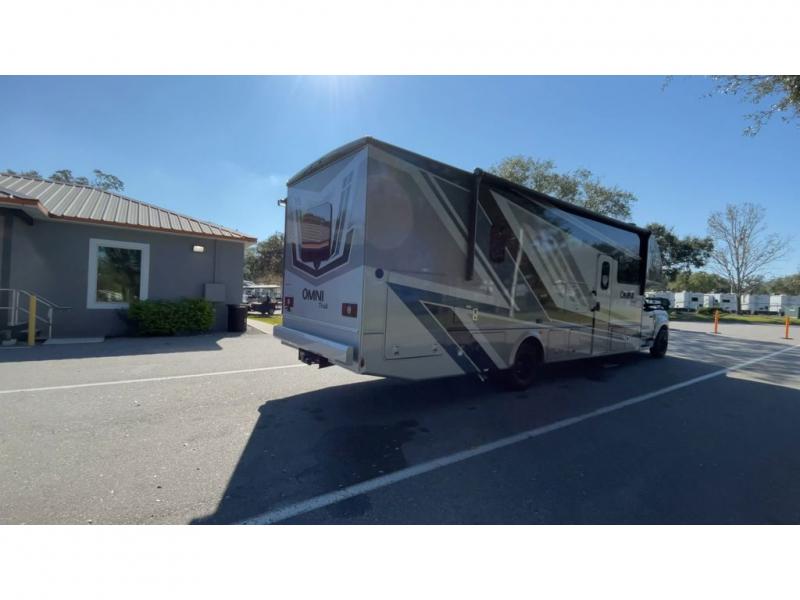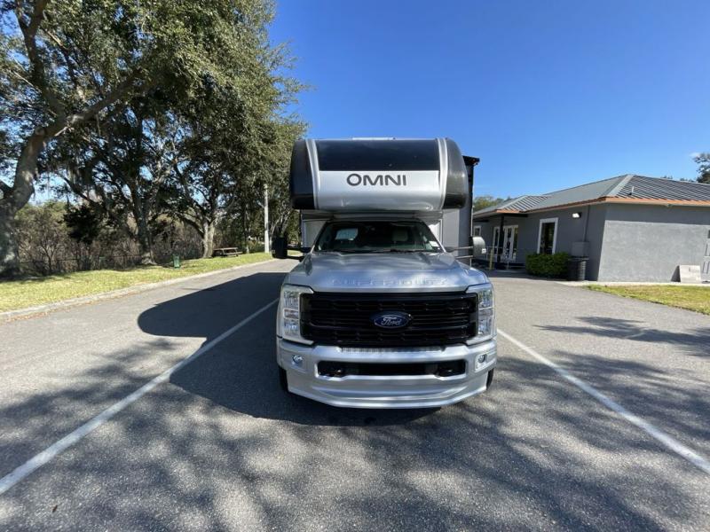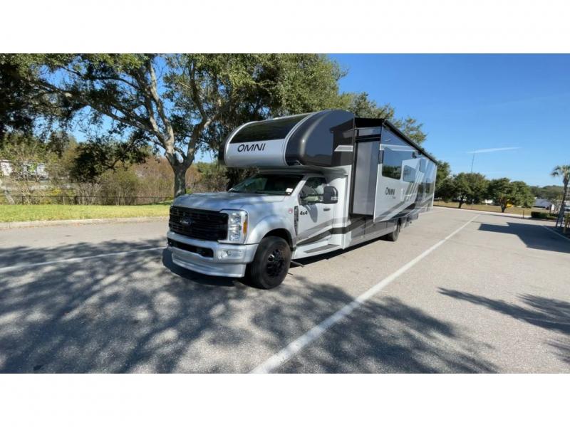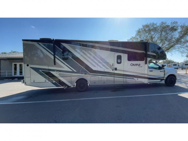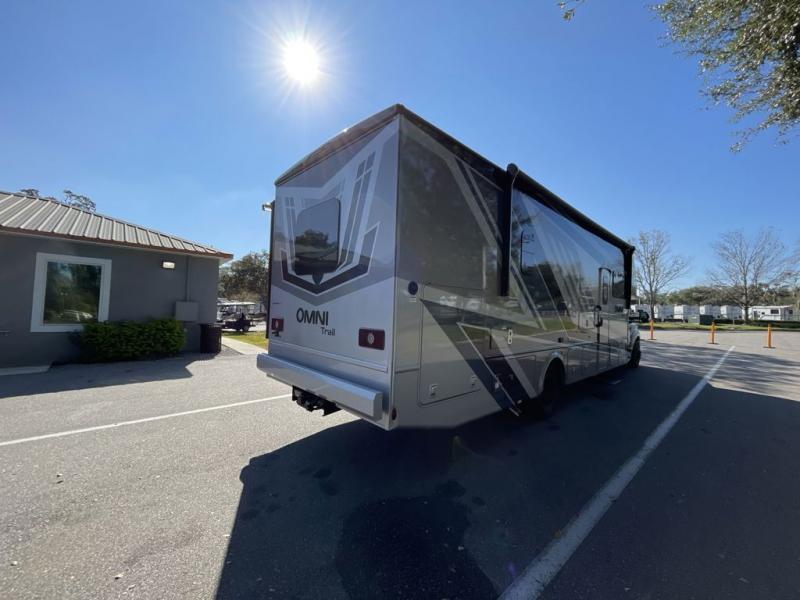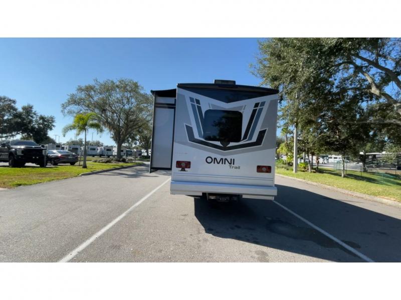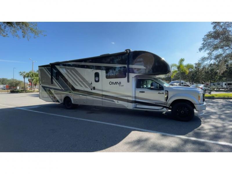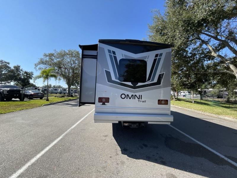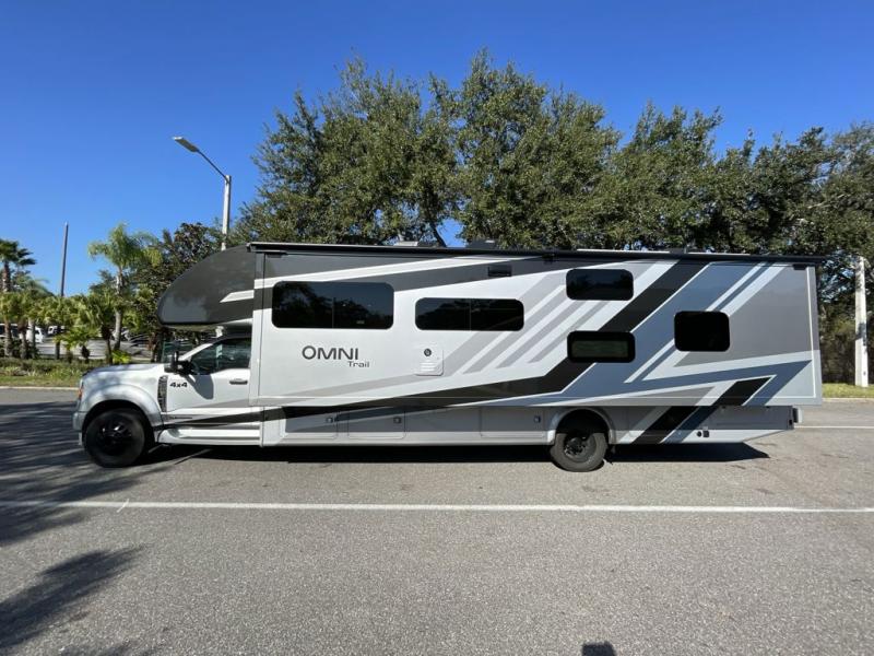 The Omni Trail Super C diesel motorhome by Thor Motor Coach starts with a durable welded tubular steel floor, vacu-bond laminated roof, walls, and floors with block foam insulation, and HD-MAX exterior with partial paint. Each model includes either a F550 or F600 Power Stroke 4 x 4 Turbo Diesel engine that will allow you to maneuver tougher terrain when the adventure calls for it. The cockpit is every captain's dream with its power adjustable driver's seat, side view camera system, heated remote exterior mirrors, and more. You can control all of your coach's functions with the RapidCamp+ multiplex wiring control system, and the Winegard ConnecT Wi-Fi extender with 5G will allow you to stay in touch with the outside world as you travel. Each model includes residential linoleum throughout, Leatherette furniture, solid surface countertops in the kitchen, and a glass shower door for that added touch of luxury. Come see all the other great features the Omni Trail Super C diesel motorhome has to offer!