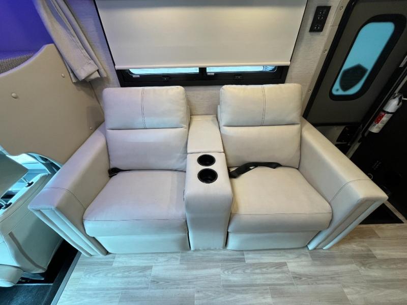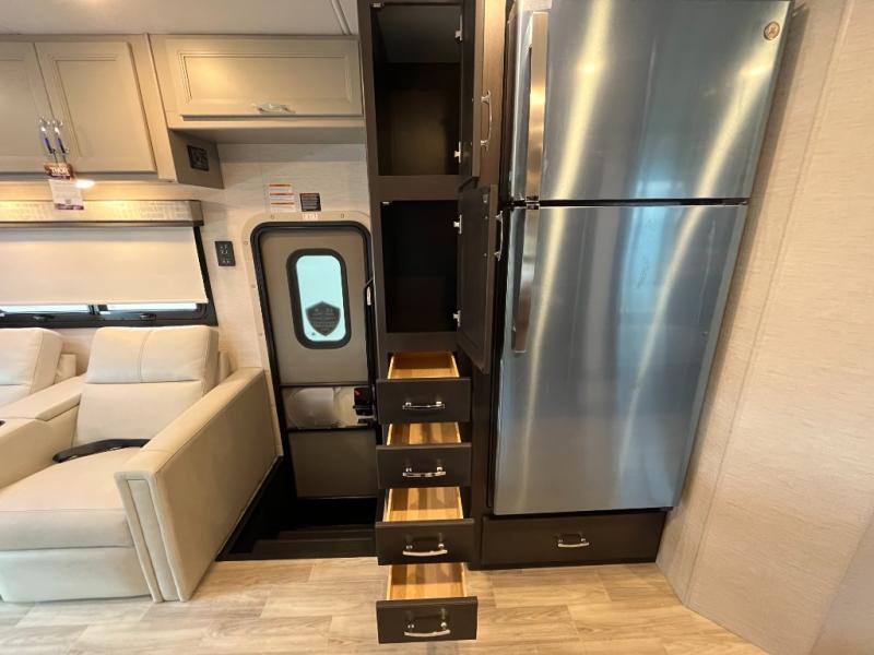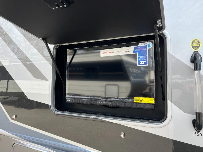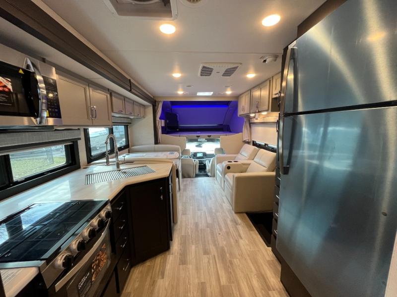 Step inside the Thor Omni R36 and enjoy a bright, open living space designed for comfort. Plush seating, large windows, and a modern entertainment center create a welcoming atmosphere. Slide-outs expand the interior, giving you extra room to relax and entertain.