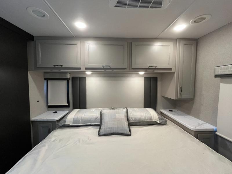 Plenty of interior and exterior storage keeps gear organized. Added conveniences like power awnings, exterior entertainment, and climate systems enhance comfort both inside and out.