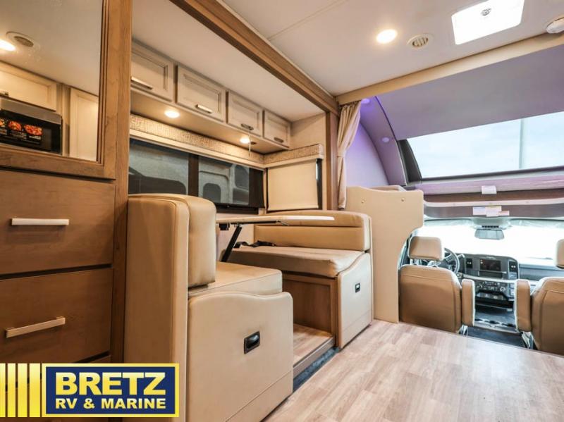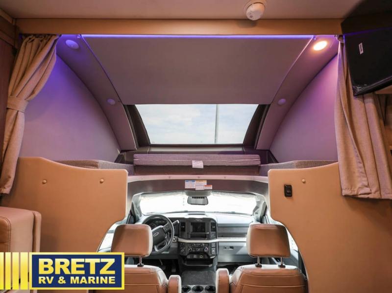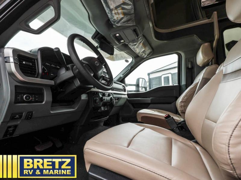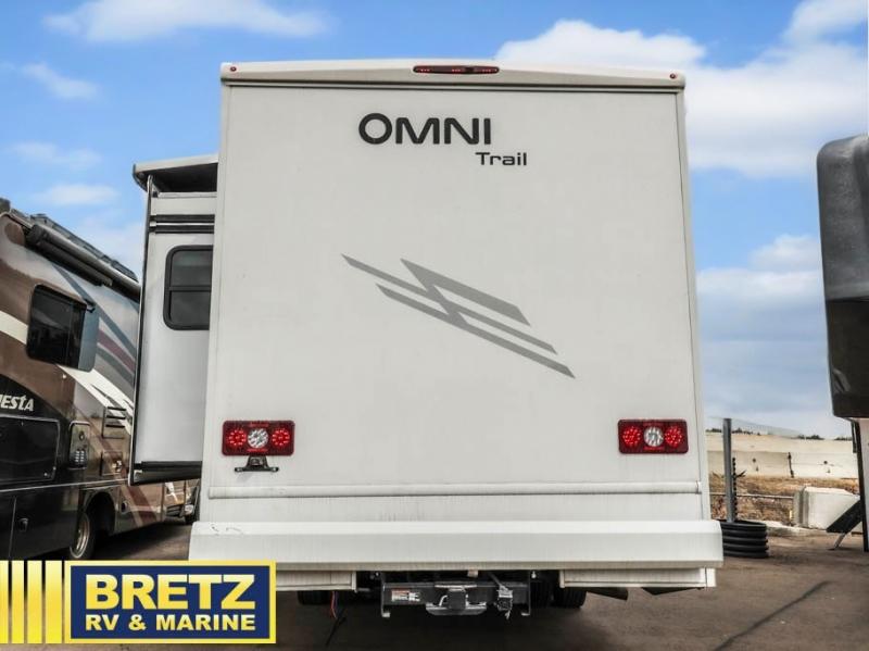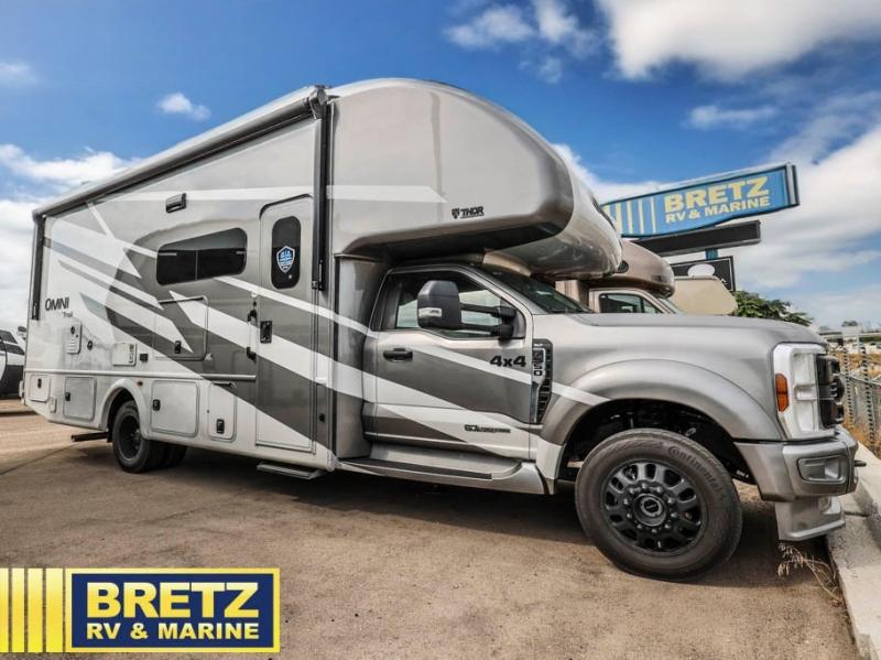 The Omni Trail Super C diesel motorhome by Thor Motor Coach starts with a durable welded tubular steel floor, vacu-bond laminated roof, walls, and floors with block foam insulation, and HD-MAX exterior with partial paint. Each model includes either a F550 or F600 Power Stroke 4 x 4 Turbo Diesel engine that will allow you to maneuver tougher terrain when the adventure calls for it. The cockpit is every captain's dream with its power adjustable driver's seat, side view camera system, heated remote exterior mirrors, and more. You can control all of your coach's functions with the RapidCamp+ multiplex wiring control system, and the Winegard ConnecT Wi-Fi extender with 5G will allow you to stay in touch with the outside world as you travel. Each model includes residential linoleum throughout, Leatherette furniture, solid surface countertops in the kitchen, and a glass shower door for that added touch of luxury. Come see all the other great features the Omni Trail Super C diesel motorhome has to offer!