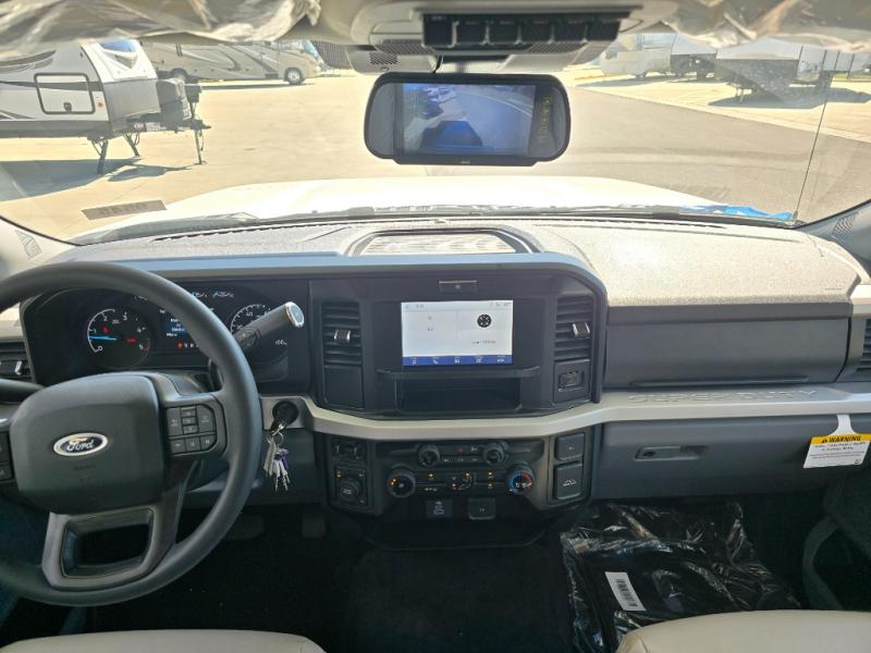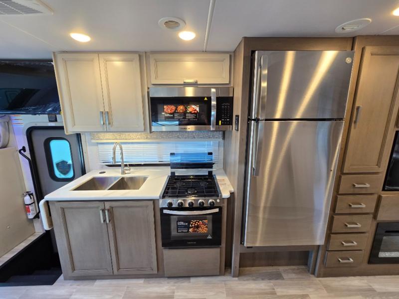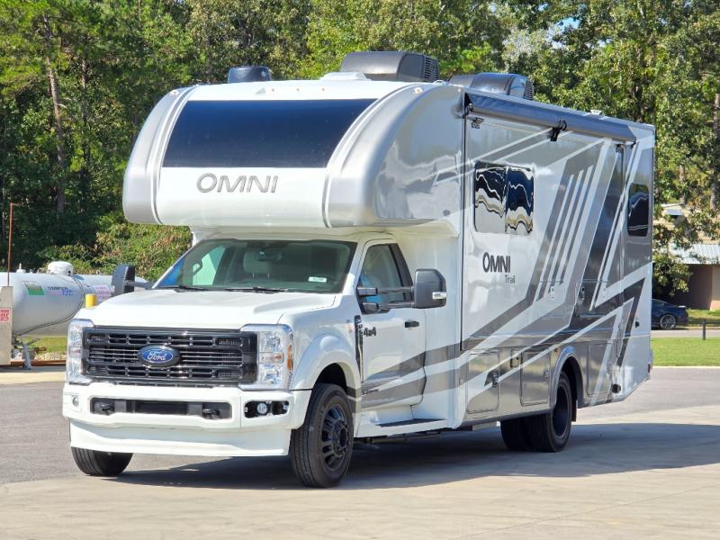 The Omni Trail Super C diesel motorhome by Thor Motor Coach starts with a durable welded tubular steel floor, vacu-bond laminated roof, walls, and floors with block foam insulation, and HD-MAX exterior with partial paint. Each model includes either a F550 or F600 Power Stroke 4 x 4 Turbo Diesel engine that will allow you to maneuver tougher terrain when the adventure calls for it. The cockpit is every captain's dream with its power adjustable driver's seat, side view camera system, heated remote exterior mirrors, and more. You can control all of your coach's functions with the RapidCamp+ multiplex wiring control system, and the Winegard ConnecT Wi-Fi extender with 5G will allow you to stay in touch with the outside world as you travel. Each model includes residential linoleum throughout, Leatherette furniture, solid surface countertops in the kitchen, and a glass shower door for that added touch of luxury. Come see all the other great features the Omni Trail Super C diesel motorhome has to offer!