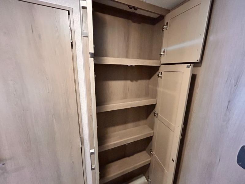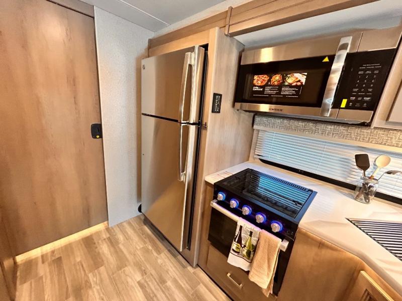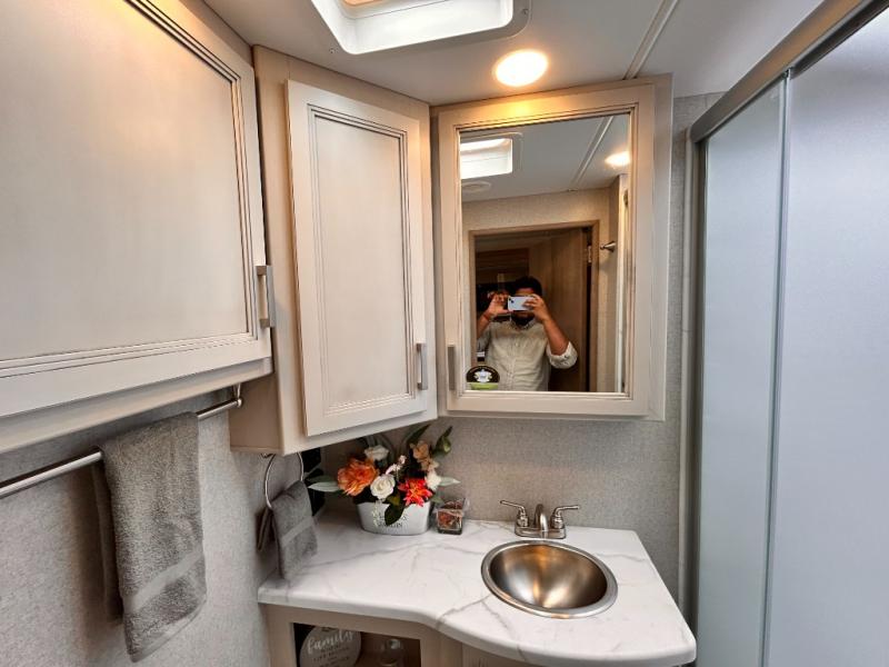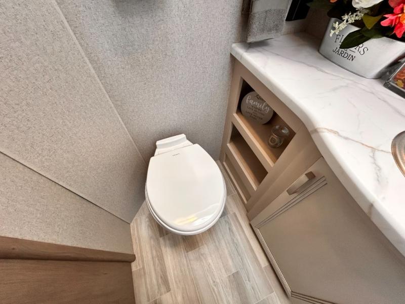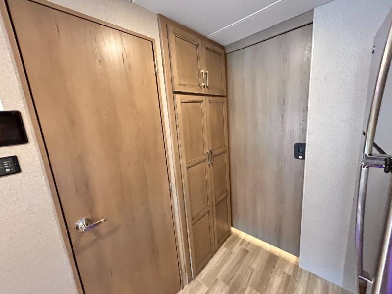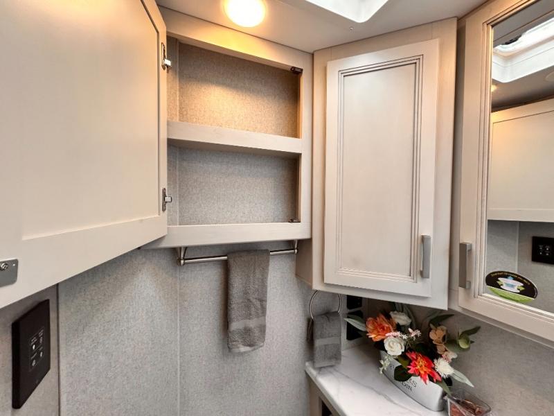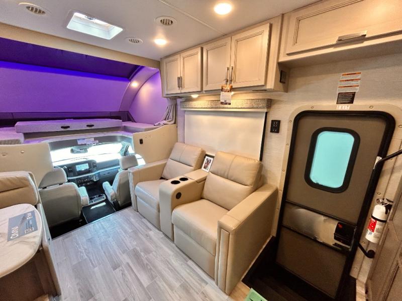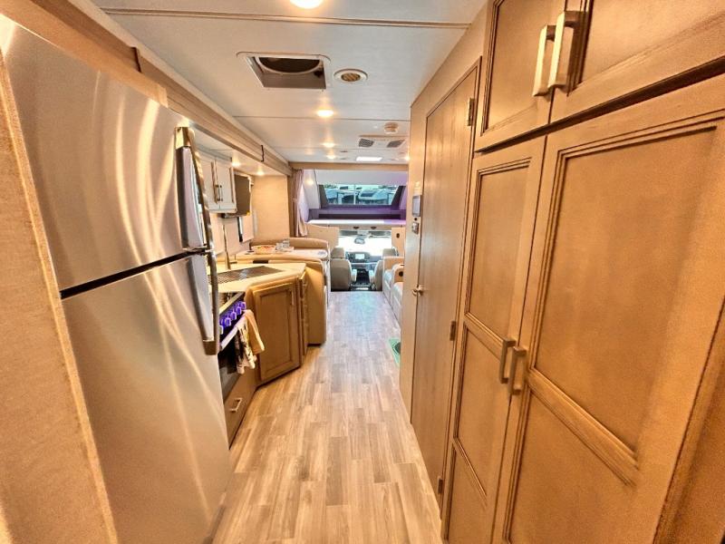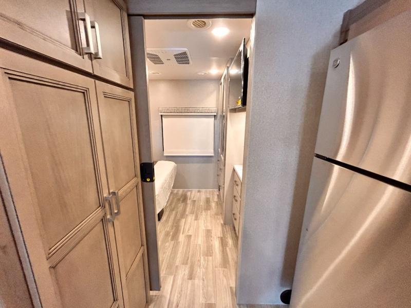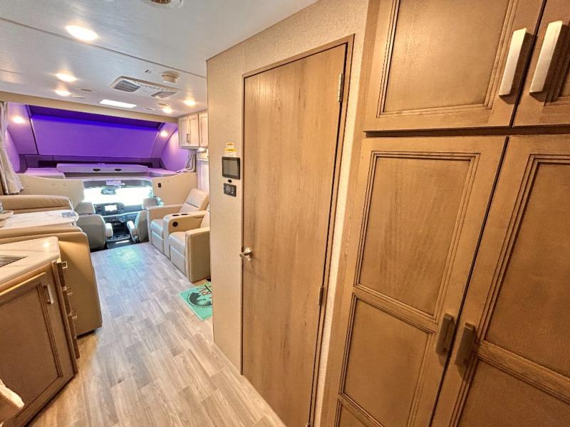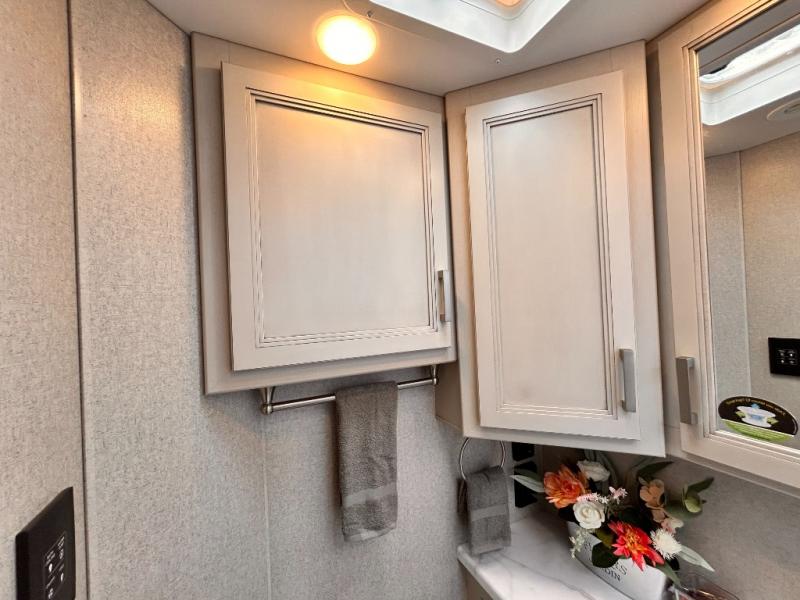 If you've been wanting to travel the country in style, now is the time with this motorhome that can sleep five people each night. The 40" living room Smart TV is directly across from the theater seating for easy viewing, plus there is a 32" bedroom Smart TV and an 32" exterior Smart TV for all your entertainment needs. The Dream Dinette will be the perfect place to enjoy breakfast each morning as you plan out your day, or you may just want to sit at the picnic table under the 14' power awning. This model includes a mid-ship full bath with a shower skylight that will not only provide more natural light, but will give you more head room as you wash up. The rear private bedroom will feel just like home with its 60" x 75" queen bed slide out, plus there is a wardrobe to keep your clothes tidy!