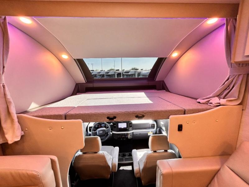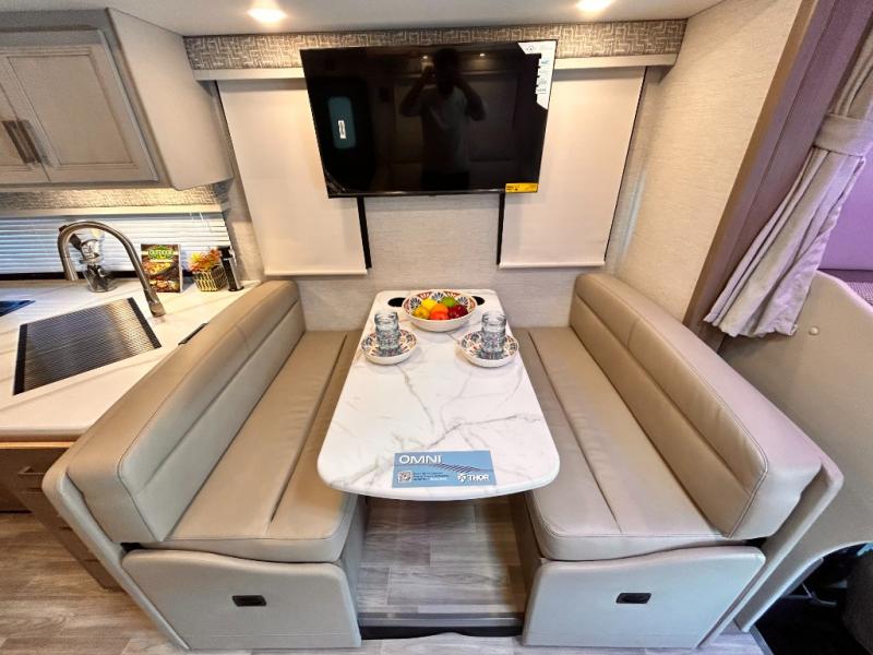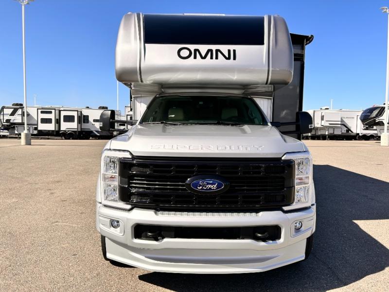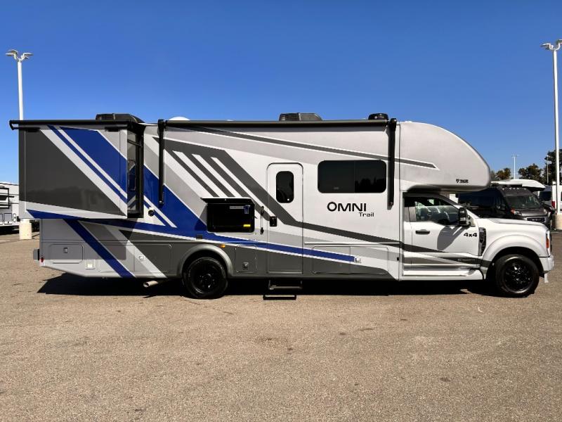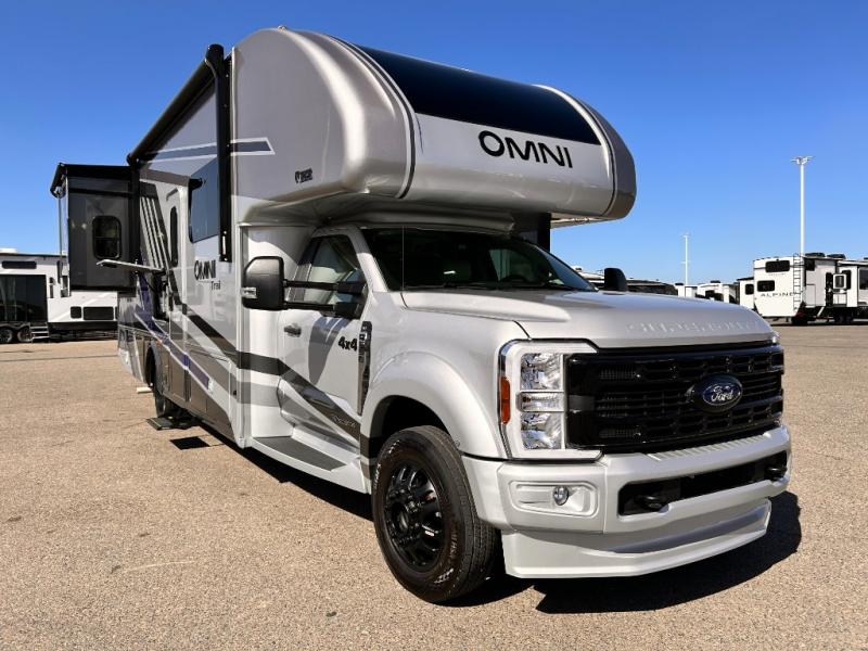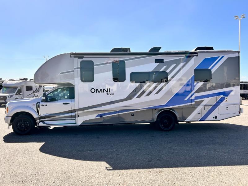 The Omni Trail Super C diesel motorhome by Thor Motor Coach starts with a durable welded tubular steel floor, vacu-bond laminated roof, walls, and floors with block foam insulation, and HD-MAX exterior with partial paint. Each model includes either a F550 or F600 Power Stroke 4 x 4 Turbo Diesel engine that will allow you to maneuver tougher terrain when the adventure calls for it. The cockpit is every captain's dream with its power adjustable driver's seat, side view camera system, heated remote exterior mirrors, and more. You can control all of your coach's functions with the RapidCamp+ multiplex wiring control system, and the Winegard ConnecT Wi-Fi extender with 5G will allow you to stay in touch with the outside world as you travel. Each model includes residential linoleum throughout, Leatherette furniture, solid surface countertops in the kitchen, and a glass shower door for that added touch of luxury. Come see all the other great features the Omni Trail Super C diesel motorhome has to offer!