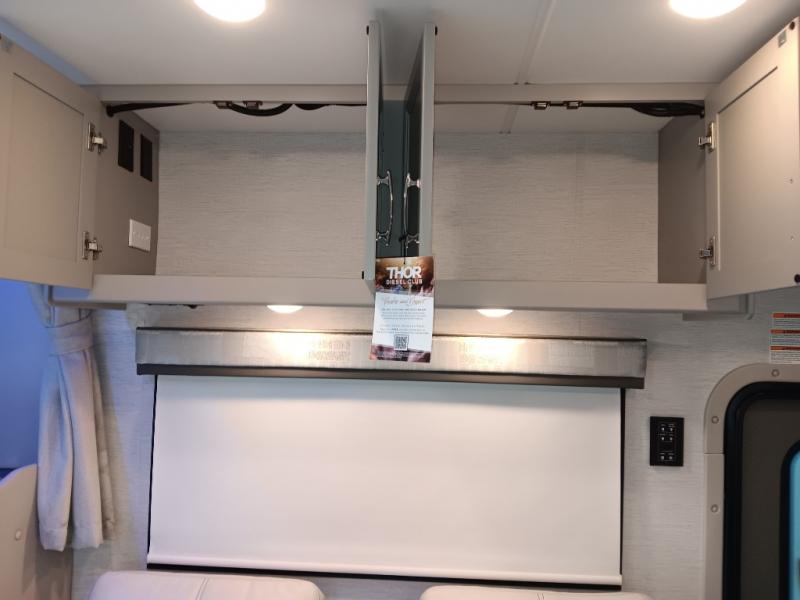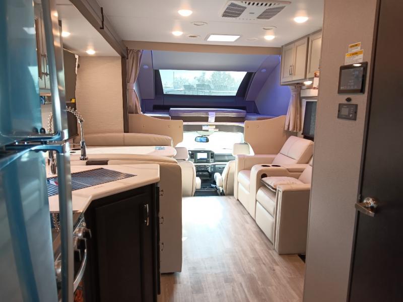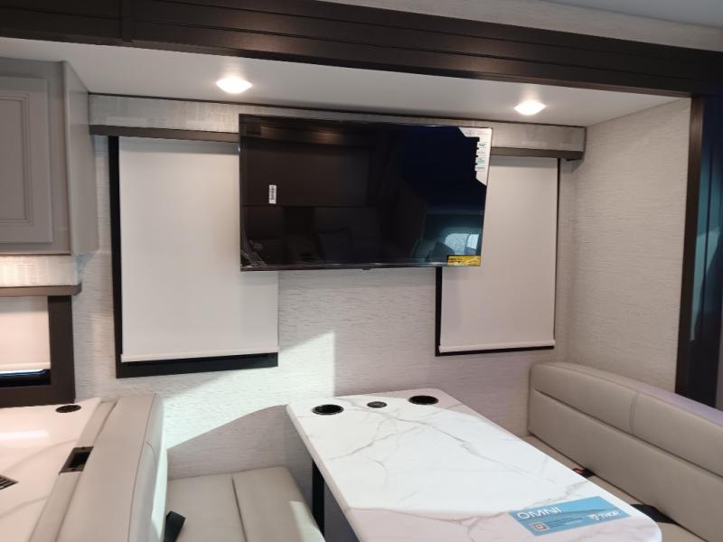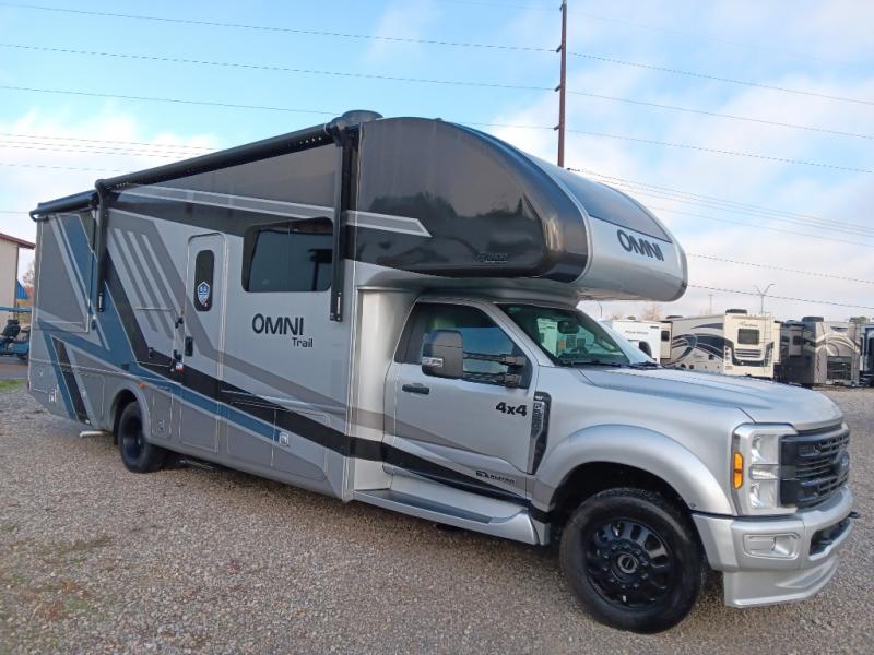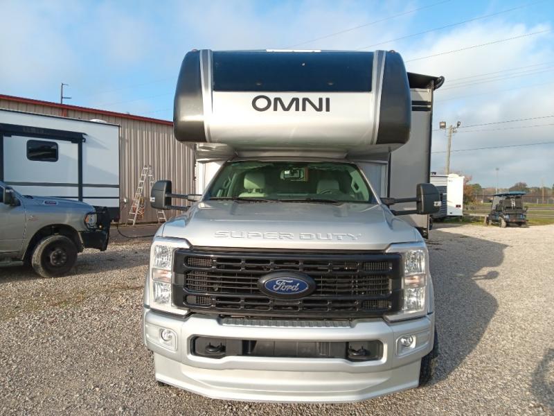 The Omni Trail Super C diesel motorhome by Thor Motor Coach starts with a durable welded tubular steel floor, vacu-bond laminated roof, walls, and floors with block foam insulation, and HD-MAX exterior with partial paint. Each model includes either a F550 or F600 Power Stroke 4 x 4 Turbo Diesel engine that will allow you to maneuver tougher terrain when the adventure calls for it. The cockpit is every captain's dream with its power adjustable driver's seat, side view camera system, heated remote exterior mirrors, and more. You can control all of your coach's functions with the RapidCamp+ multiplex wiring control system, and the Winegard ConnecT Wi-Fi extender with 5G will allow you to stay in touch with the outside world as you travel. Each model includes residential linoleum throughout, Leatherette furniture, solid surface countertops in the kitchen, and a glass shower door for that added touch of luxury. Come see all the other great features the Omni Trail Super C diesel motorhome has to offer!