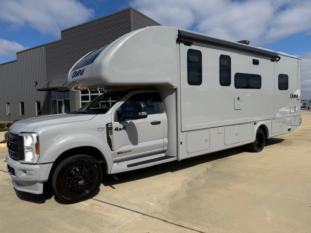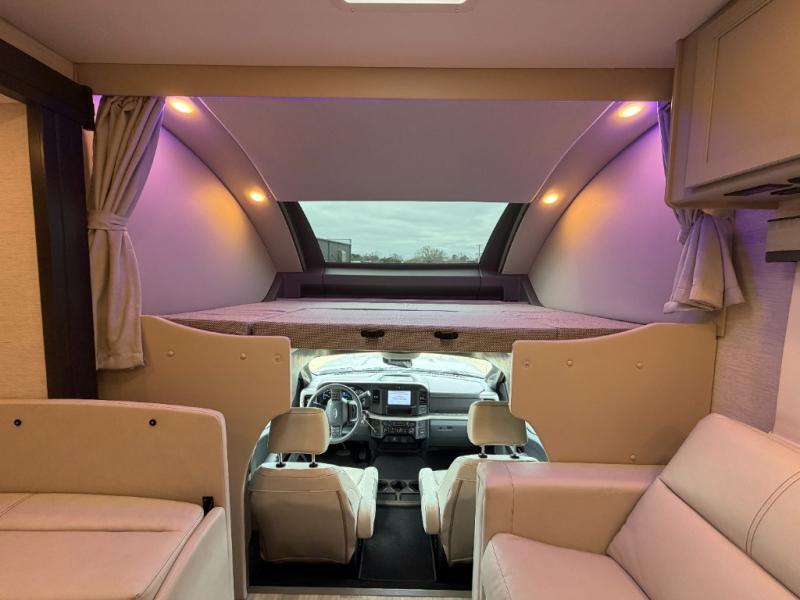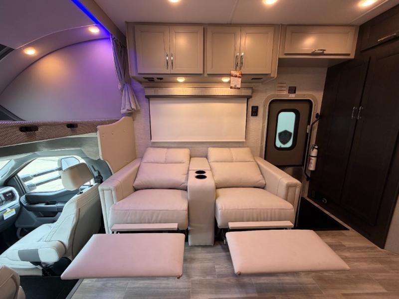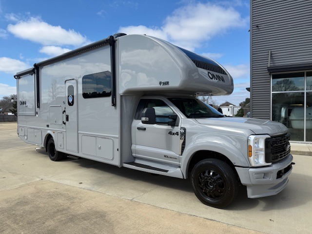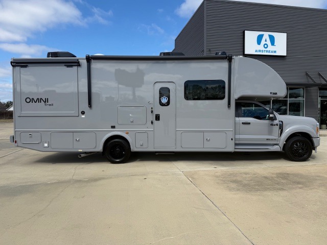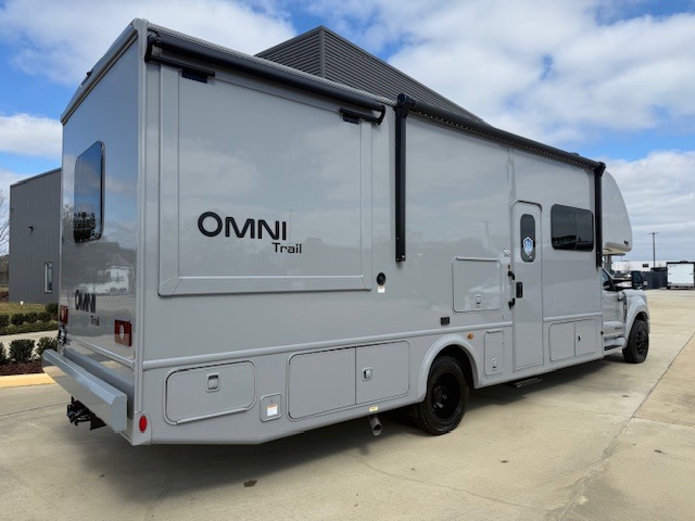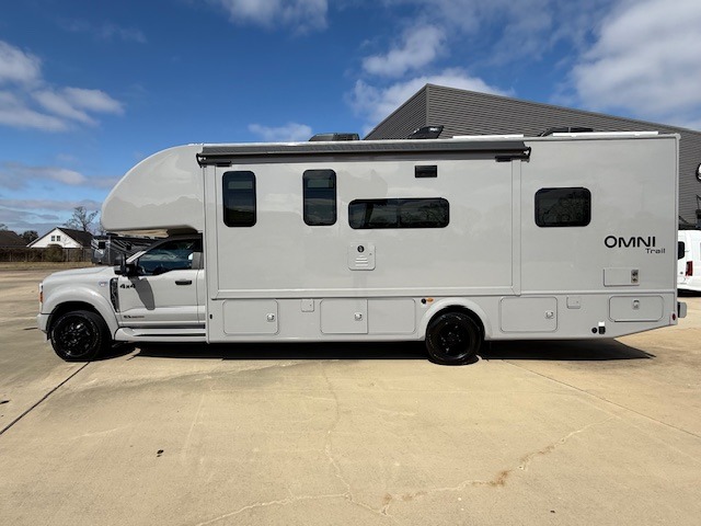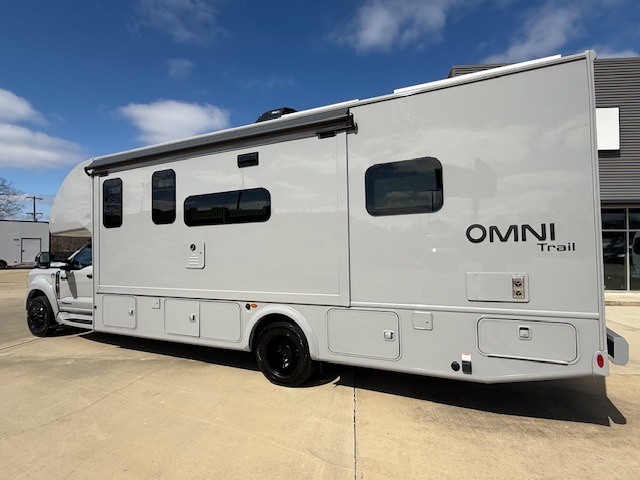 The Omni Trail Super C diesel motorhome by Thor Motor Coach starts with a durable welded tubular steel floor, vacu-bond laminated roof, walls, and floors with block foam insulation, and HD-MAX exterior with partial paint. Each model includes either a F550 or F600 Power Stroke 4 x 4 Turbo Diesel engine that will allow you to maneuver tougher terrain when the adventure calls for it. The cockpit is every captain's dream with its power adjustable driver's seat, side view camera system, heated remote exterior mirrors, and more. You can control all of your coach's functions with the RapidCamp+ multiplex wiring control system, and the Winegard ConnecT Wi-Fi extender with 5G will allow you to stay in touch with the outside world as you travel. Each model includes residential linoleum throughout, Leatherette furniture, solid surface countertops in the kitchen, and a glass shower door for that added touch of luxury. Come see all the other great features the Omni Trail Super C diesel motorhome has to offer!