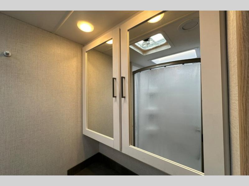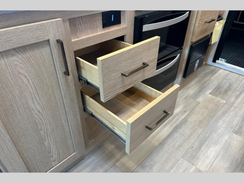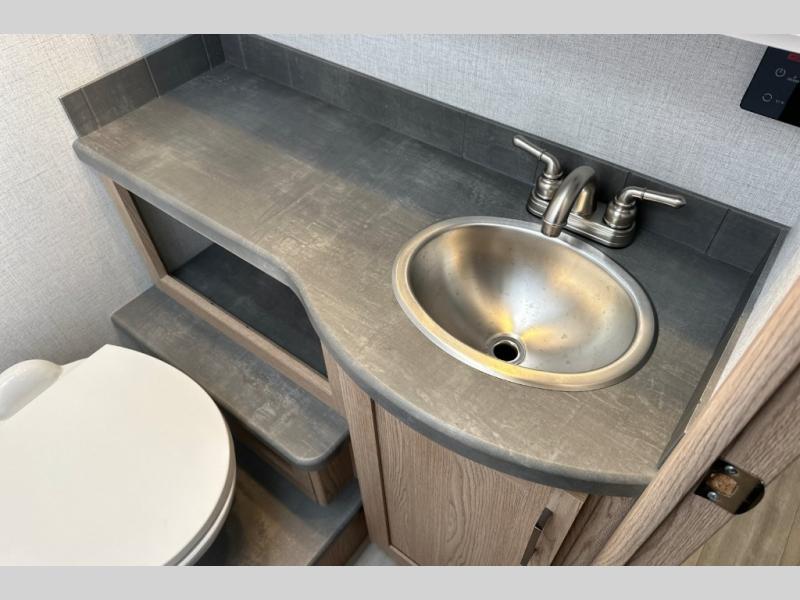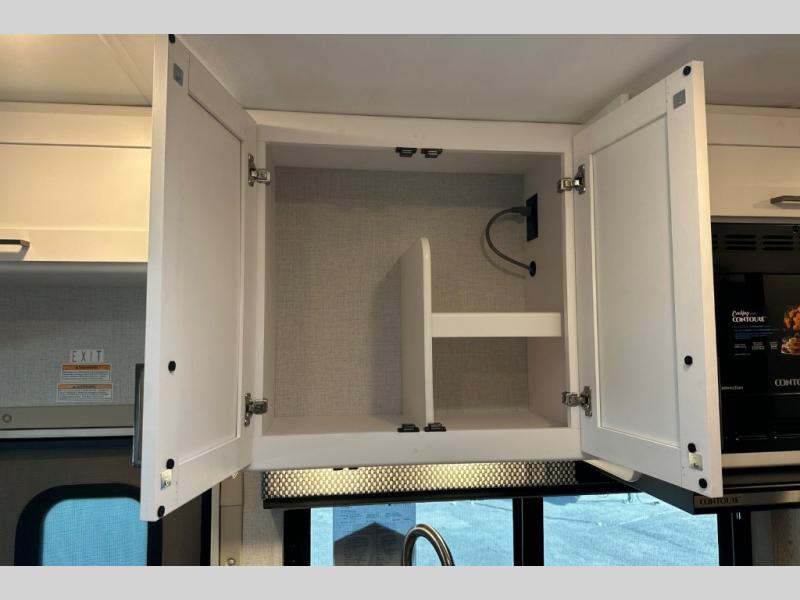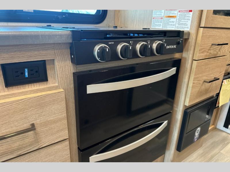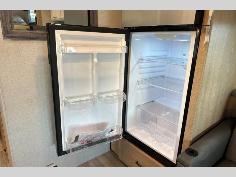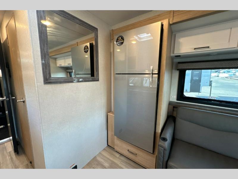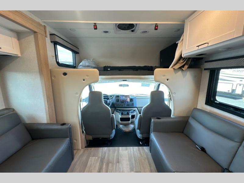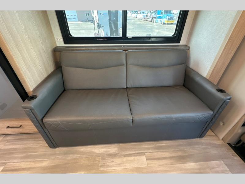 The Outlaw Class C gas motorhome toy hauler starts with the durable Ford E-Series chassis with a powerful 7.3L V8 engine that will allow you to adventure on! The 8,000 lb. hitch will be perfect for your car or motorcycle trailer, and the 10" touchscreen with a back-up monitor will let you maneuver the campground like a pro. This coach includes a Winegard ConnecT 2.0 WiFi/4G/TV antenna for all your connection needs, or you may want to unplug for a while with the 100-watt solar charging system with a power controller. The one-piece fiberglass front cap and sterling fiberglass exterior with a new graphics package is sure to be eye-catching, and automatic leveling jacks come standard for easy set-up. Head inside to find pressed laminate countertops throughout, leatherette furniture, residential vinyl flooring, plus many more comforts you won't want to travel without!