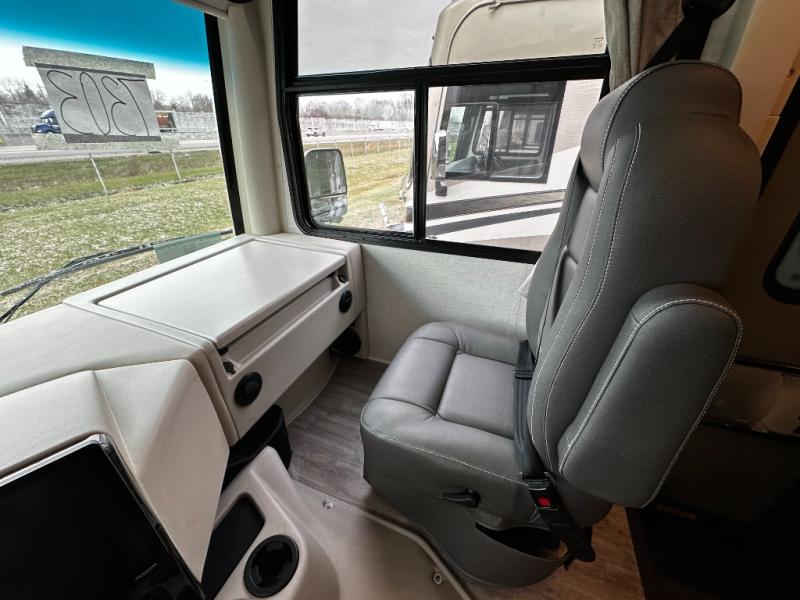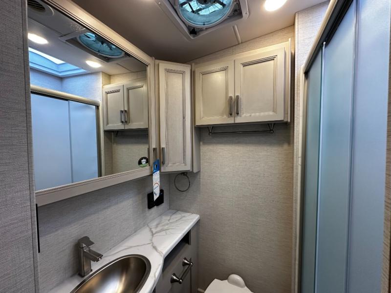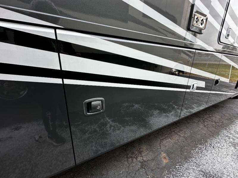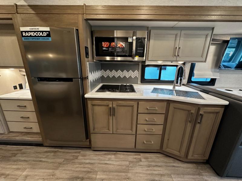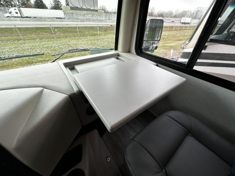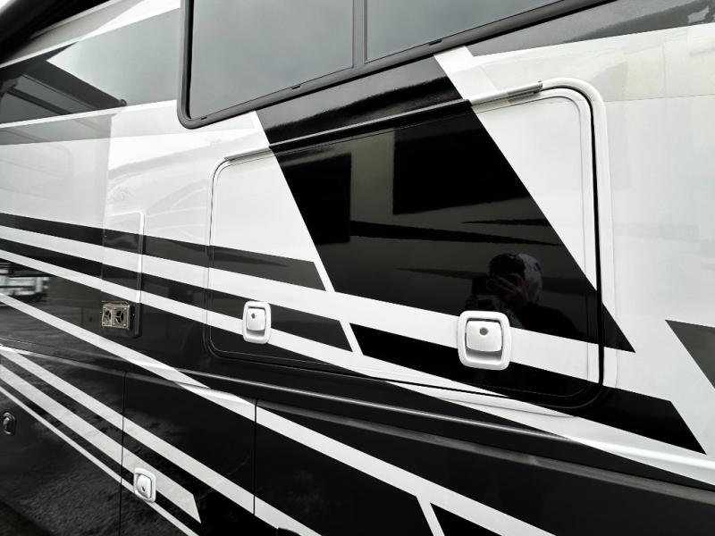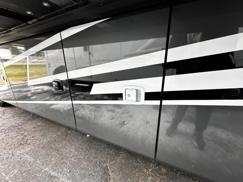 Step inside and discover an expansive, thoughtfully designed interior crafted for modern RV living. The open floorplan maximizes space and functionality, creating seamless flow from the living area to the kitchen and private bedroom. Premium furnishings and stylish finishes give this coach an upscale look that feels like home, while panoramic windows flood the space with natural light and showcase breathtaking views at every stop.