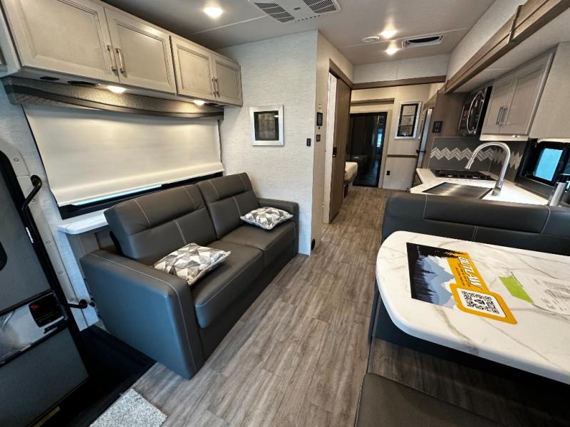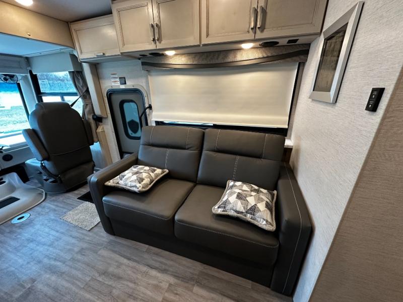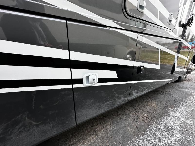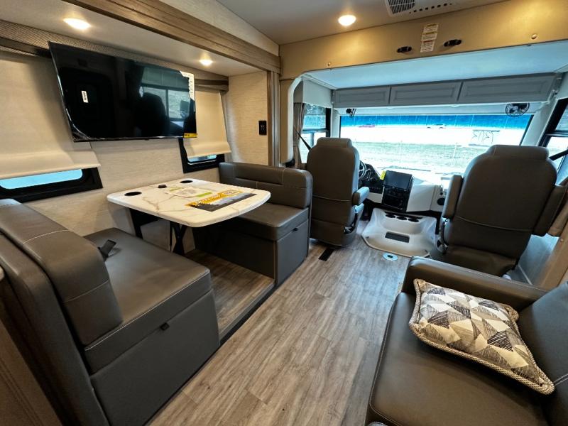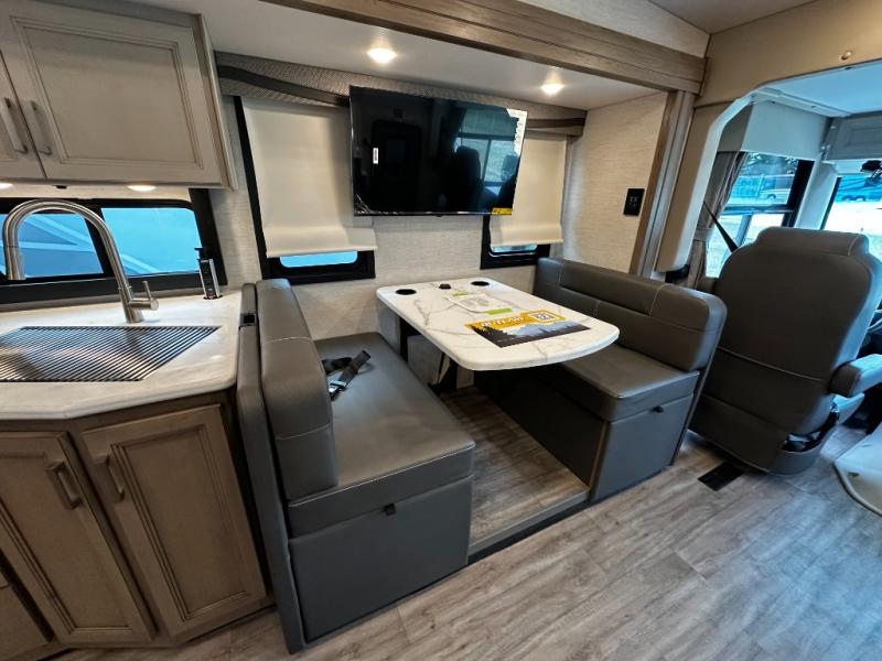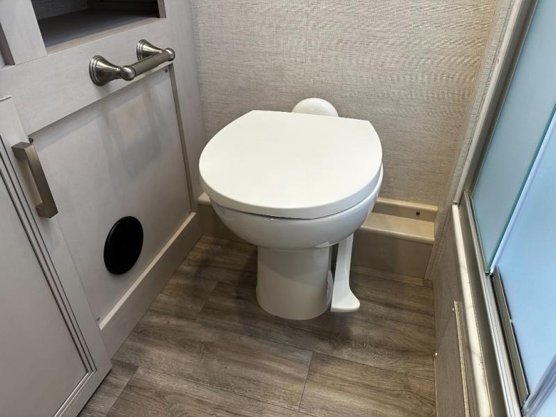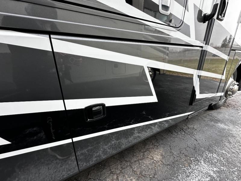 Step inside and discover an expansive, thoughtfully designed interior crafted for modern RV living. The open floorplan maximizes space and functionality, creating seamless flow from the living area to the kitchen and private bedroom. Premium furnishings and stylish finishes give this coach an upscale look that feels like home, while panoramic windows flood the space with natural light and showcase breathtaking views at every stop.