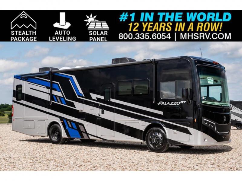 MSRP $301,734. The New 2026 Thor Motor Coach Palazzo GT Diesel Pusher Model 33.5 Bunk House features a power drop down loft, 100-watt solar charging system, 300 HP Cummins diesel engine with 660 lbs. of torque and a Freightliner XC chassis. Standard features include bluetooth soundbar & large LED TV in the exterior entertainment center, induction cooktop, touchscreen multiplex control system with smartphone app, Winegard ConnecT 2.0 4G/Wi-Fi system, 360 Siphon Vent cap and outside shower. The Palazzo also features a power patio awning with integrated LED lighting, invisible front paint protection & front electric drop-down overhead loft, diesel generator, solid surface counters, power driver's seat, inverter, residential refrigerator, solid surface countertops, (2) ducted roof A/C units, 3-camera monitoring system, one piece windshield, fiberglass storage compartments, fully automatic hydraulic leveling system, automatic entry step and much more. Shop a huge selection of diesel pusher motorhomes all at 1 location! Choose from Thor Motor Coach Palazzo – Riviera – Aria – Fleetwood Discovery – Frontier – Holiday Rambler Endeavor – Nautica – Entegra Coach Reatta – Aspire and more. We also buy and sell quality pre-owned models such Newmar Mountain Aire – Dutch Star – New Aire – Ventana – Kountry Star – Northern Star - Allegro Bus – Phaeton – Allegro Red – Byway – Allegro Breeze – Winnebago Journey – Forza – Coachmen Sportscoach – Thor Venetian – Tuscany and much more. Visit MHSRV.com for our complete line-up and the sale prices that have made us the #1 volume selling motor home dealership in the world 12 years in a row! For additional details on this unit and our entire inventory including brochures, window sticker, videos, photos, reviews & testimonials as well as additional information about Motor Home Specialist and our manufacturers please visit us at MHSRV.com or call 800-335-6054. At Motor Home Specialist, we DO NOT charge any prep or orientation fees like you will find at other dealerships. All sale prices include a 200-point inspection, interior & exterior wash, detail service and a fully automated high-pressure rain booth test and coach wash that is a standout service unlike that of any other in the industry. You will also receive a thorough coach orientation with an MHSRV technician, a night stay in our delivery park featuring landscaped and covered pads with full hook-ups and much more! Read Thousands upon Thousands of 5-Star Reviews at MHSRV.com and See What They Had to Say About Their Experience at Motor Home Specialist. WHY PAY MORE? WHY SETTLE FOR LESS?