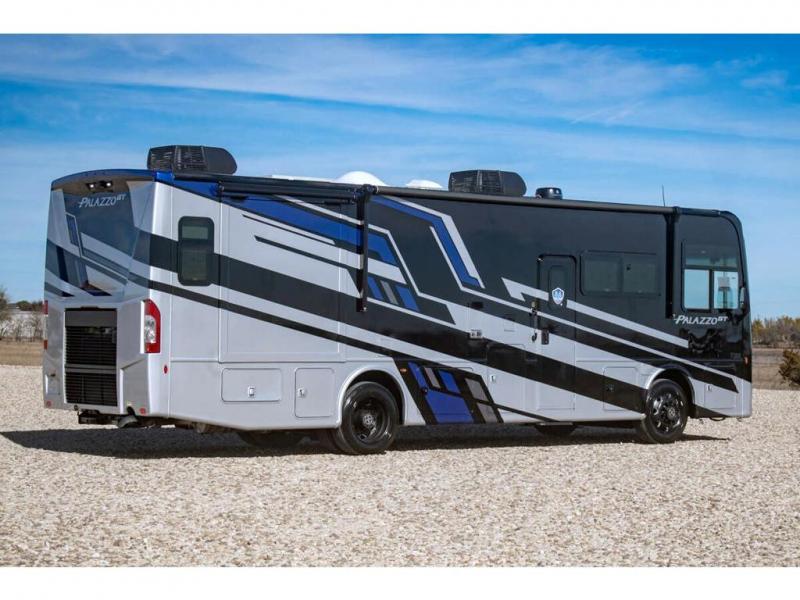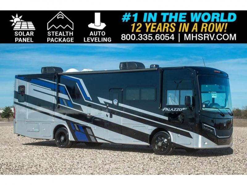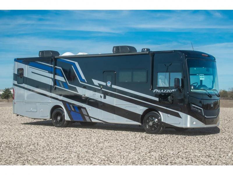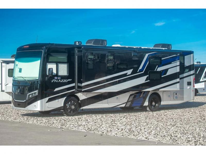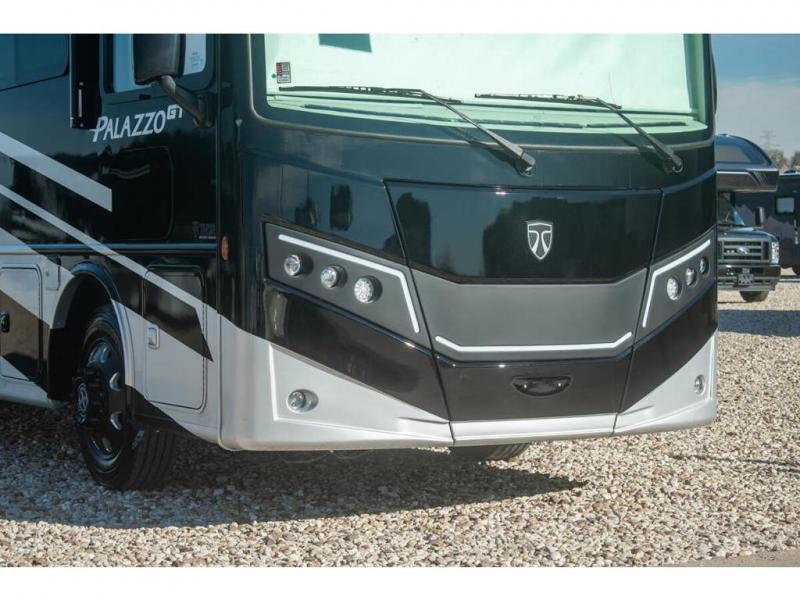 Start traveling affordably with the ultimate comfort and conveniences with any one of these Thor Motor Coach Palazzo GT Class A diesel motorhomes! They are built on a robust foundation with the Freightliner XC-S straight rail chassis with Atlas foundation, and powered by a Cummins diesel engine. The full body paint package with gel-coated sidewalls will turn heads on the highway and the invisible front paint protection will protect it from road debris. The inviting interiors have everything you need to feel right at home with features like an electric fireplace, easy-to-maintain rolled vinyl flooring, solid surface countertops, and residential refrigerator to fit your whole grocery haul. Come find your favorite one today!