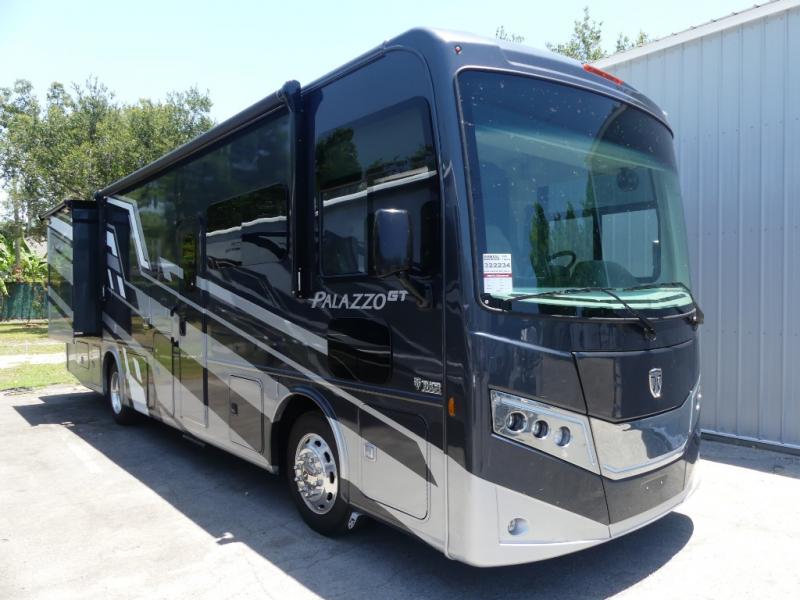 Start traveling affordably with the ultimate comfort and conveniences with any one of these Thor Motor Coach Palazzo GT Class A diesel motorhomes! They are built on a robust foundation with the Freightliner XC-S straight rail chassis with Atlas foundation, and powered by a Cummins diesel engine. The full body paint package with gel-coated sidewalls will turn heads on the highway and the invisible front paint protection will protect it from road debris. The inviting interiors have everything you need to feel right at home with features like an electric fireplace, easy-to-maintain rolled vinyl flooring, solid surface countertops, and residential refrigerator to fit your whole grocery haul. Come find your favorite one today!