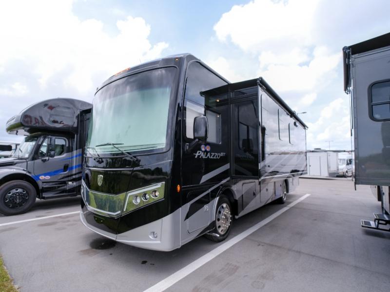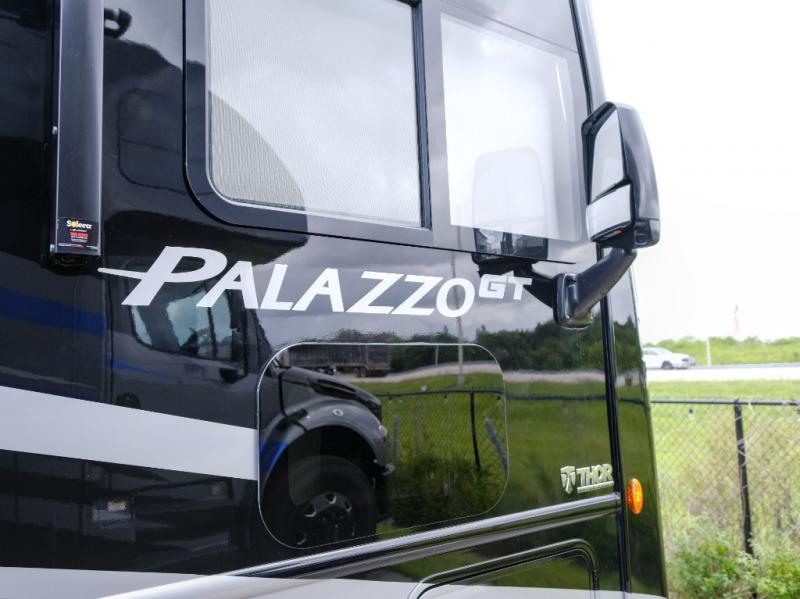 Start traveling affordably with the ultimate comfort and conveniences with any one of these Thor Motor Coach Palazzo GT Class A diesel motorhomes! They are built on a robust foundation with the Freightliner XC-S straight rail chassis with Atlas foundation, and powered by a Cummins diesel engine. The full body paint package with gel-coated sidewalls will turn heads on the highway and the invisible front paint protection will protect it from road debris. The inviting interiors have everything you need to feel right at home with features like an electric fireplace, easy-to-maintain rolled vinyl flooring, solid surface countertops, and residential refrigerator to fit your whole grocery haul. Come find your favorite one today!