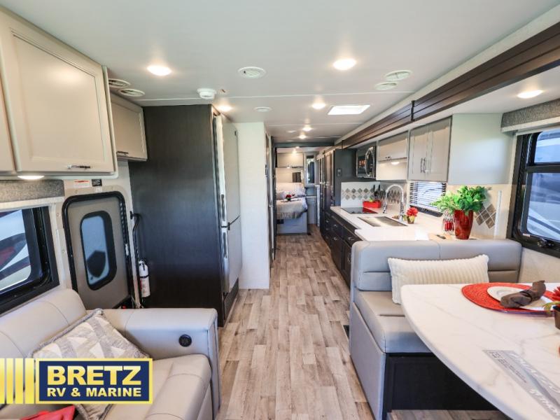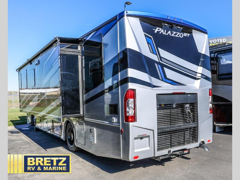 Start traveling affordably with the ultimate comfort and conveniences with any one of these Thor Motor Coach Palazzo GT Class A diesel motorhomes! They are built on a robust foundation with the Freightliner XC-S straight rail chassis with Atlas foundation, and powered by a Cummins diesel engine. The full body paint package with gel-coated sidewalls will turn heads on the highway and the invisible front paint protection will protect it from road debris. The inviting interiors have everything you need to feel right at home with features like an electric fireplace, easy-to-maintain rolled vinyl flooring, solid surface countertops, and residential refrigerator to fit your whole grocery haul. Come find your favorite one today!