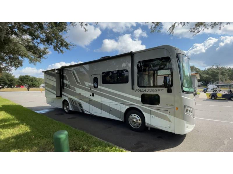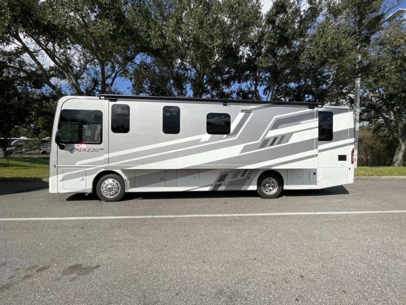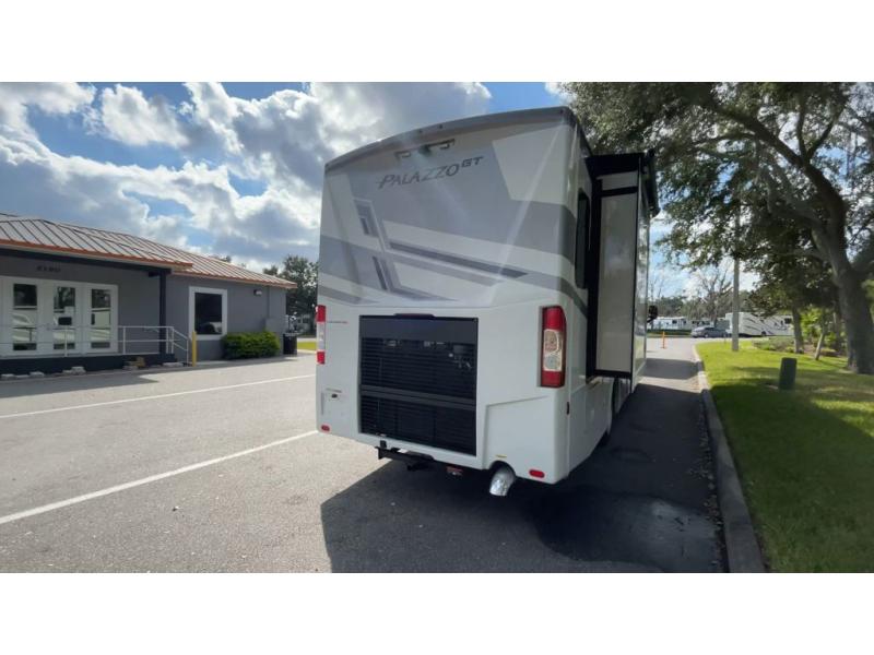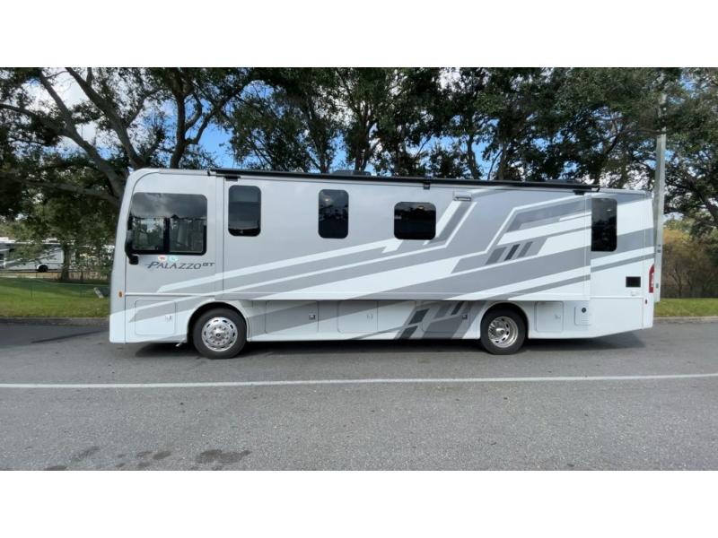 Start traveling affordably with the ultimate comfort and conveniences with any one of these Thor Motor Coach Palazzo GT Class A diesel motorhomes! They are built on a robust foundation with the Freightliner XC-S straight rail chassis with Atlas foundation, and powered by a Cummins diesel engine. The full body paint package with gel-coated sidewalls will turn heads on the highway and the invisible front paint protection will protect it from road debris. The inviting interiors have everything you need to feel right at home with features like an electric fireplace, easy-to-maintain rolled vinyl flooring, solid surface countertops, and residential refrigerator to fit your whole grocery haul. Come find your favorite one today!